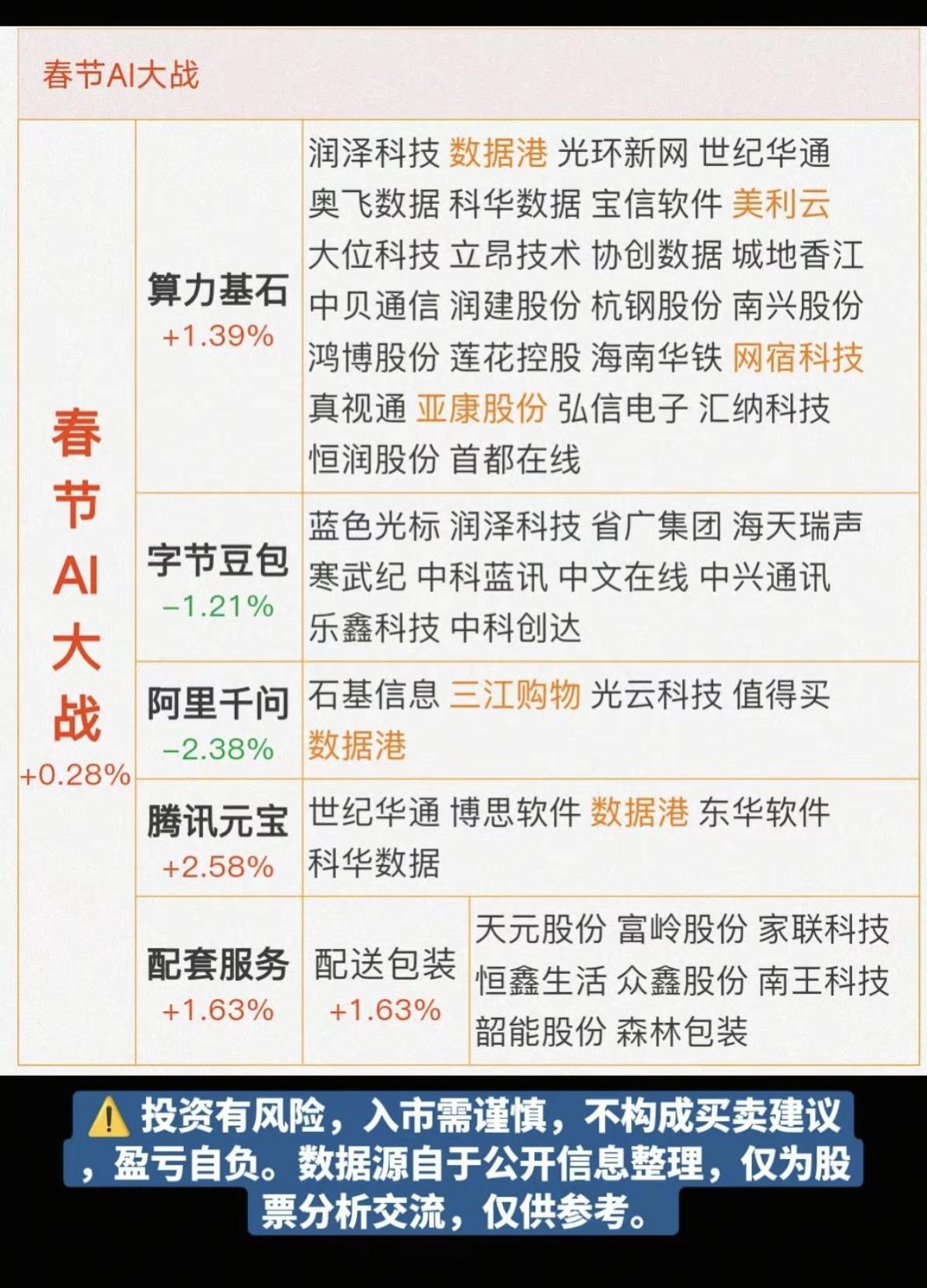 马年春节:红包AI大战! 2026年马年春节,中国互联网行业迎来一场前所未有的AI红包大战,腾讯,阿里、百度、字节,四大科技巨头累计投入约45亿现金与资源,开启了AI新时代! 相关核心龙头股: