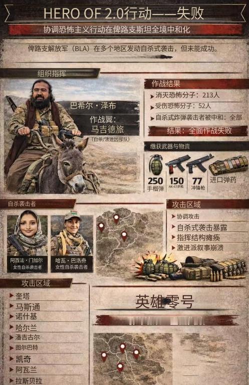 巴基斯坦取得罕见大捷,给中国人报仇了。一战击毙俾路支武装分子213人,打伤52人。而且,缴获150把AK-47突击步枪,77把冲锋枪,还有大量外国弹药。 此次行动的目标是长期活跃在俾路支省的“俾路支解放武装”(BLA)。该组织近年来频繁发动恐怖袭击,尤其针对中资项目和中方人员。 2026年1月31日,该组织在俾路支省多地发动大规模袭击,造成36名平民死亡,22名安全部队人员殉职。巴基斯坦军方迅速启动代号为“黑色风暴”的清剿行动,在全省范围内展开拉网式排查。 在行动中,巴基斯坦安全部队展现出高效的协同作战能力。他们通过情报分析锁定恐怖分子藏身地点,动用直升机、无人机等现代化装备实施精准打击。 地面部队则采用逐屋搜索、爆破清洞的战术,对恐怖分子据点进行彻底清除。这种“空地一体、打封结合”的作战模式,正是中巴“勇士-9”联合反恐演习中重点演练的内容。 经过连续作战,巴基斯坦军方成功击毙216名恐怖分子,缴获大量武器弹药和爆炸物。值得关注的是,此次行动还摧毁了“俾路支解放武装”的指挥体系,多名高级头目在行动中被击毙。这使得该组织短期内难以恢复战斗力,对其长期策划的恐怖活动造成致命打击。 此次反恐行动的胜利,离不开中巴两国长期的反恐合作。自2017年以来,中巴已举行九次“勇士”系列反恐演习,在情报共享、战术协同、装备技术等方面进行深入交流。 通过这些演习,巴基斯坦军方不仅学习到中方先进的反恐经验,还获得了包括无人机、加密通信设备等在内的现代化装备支持。这些技术手段的应用,显著提升了巴基斯坦安全部队的战场感知能力和快速反应能力。 在此次清剿行动中,巴基斯坦军方使用的翼龙-2和彩虹-4无人机,正是中方提供的先进装备。这些无人机能够对大面积区域进行实时监控,并实施精确打击,有效弥补了地面部队在山区作战的不足。 此外,中巴联合建立的情报网络体系,帮助巴基斯坦军方提前破解了恐怖分子的加密通信,从而精准掌握其行动轨迹。 此次反恐行动的胜利,也反映出巴基斯坦国内对维护国家安全的坚定决心。长期以来,俾路支省因贫困、民族矛盾和外部干涉,成为恐怖主义滋生的温床。 但近年来,巴基斯坦政府加大对该地区的经济投入,通过基础设施建设、产业扶持等措施改善民生。同时,军方也加强了对恐怖主义的打击力度,仅2025年就击毙700多名武装分子。 此次行动的成功,不仅是巴基斯坦反恐事业的重要里程碑,也为地区安全稳定作出了积极贡献。 联合国安理会对此次恐怖袭击予以最强烈谴责,并对巴基斯坦政府的反恐行动表示支持。中国外交部也发表声明,坚决反对一切形式的恐怖主义,支持巴基斯坦维护国家安全和社会稳定的努力。 当前,尽管主要恐怖组织已遭受重创,但俾路支省的安全形势依然严峻。残余恐怖分子可能转入地下活动,或与其他极端组织勾结实施报复性袭击。 为此,巴基斯坦军方已在全省范围内实施为期一个月的禁枪令和集会禁令,并加强对边境地区的管控。同时,中方也将派遣安保顾问团队前往巴基斯坦,协助中资项目升级安防系统,进一步强化双方的安全合作。 此次巴基斯坦反恐大捷,再次彰显了中巴两国在反恐领域的深度合作。通过技术共享、经验交流和实战协同,两国正携手构建更加紧密的安全共同体。 在恐怖主义仍威胁地区稳定的背景下,这种合作不仅符合两国的共同利益,也为全球反恐事业提供了宝贵经验。未来,中巴两国将继续深化在反恐、安全等领域的合作,共同应对各种挑战,为地区和世界的和平与繁荣作出更大贡献。
