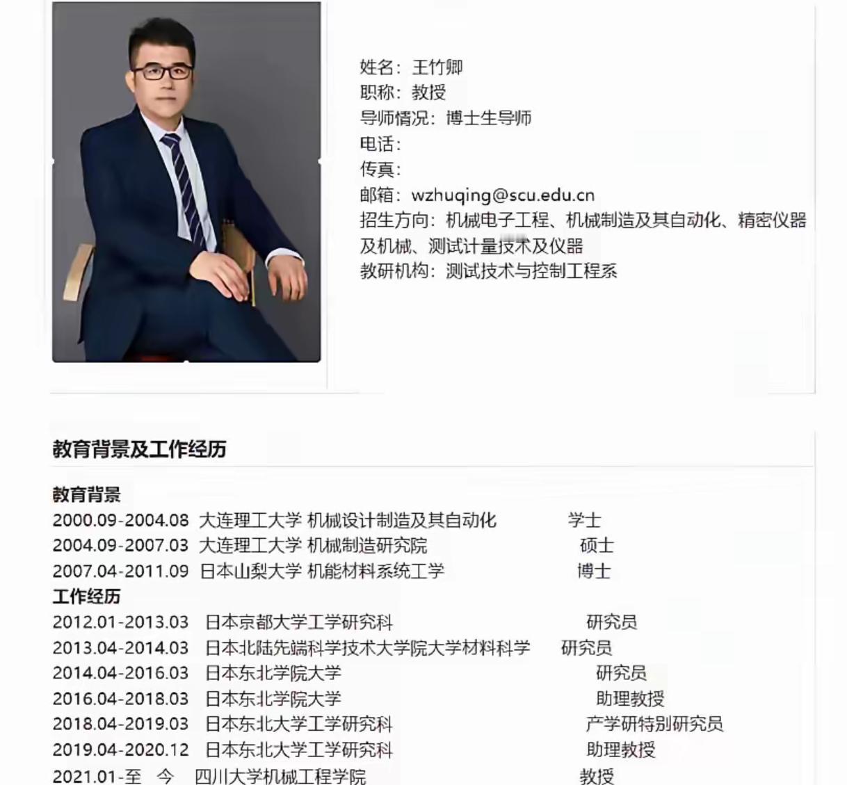 董明珠那句“不要留学生”,在王竹卿这件事上,突然有了更现实的注脚。 没人能想到,一个在国外普通大学当助教的人,有一天会站在985高校的特聘教授岗位上。这不是励志故事,是让无数人脊背发凉的现实疑问:他到底凭什么? 他的博士母校山梨大学,在世界排名里本就不算亮眼,和国内非985、211的普通一本处在同一梯队。 没有顶尖学术成果,没有突破性贡献,只是在海外高校里做了几年助教,混了一圈经历,回国就被贴上“留学研究人才”的标签,顺利进入川大。 十几年的海外经历,成了他的“护身符”,也成了立场问题的“温床”。当他的言论被曝光时,很多人并不意外,长期在海外的生活和工作,早已让他的价值观偏离了我们的立场。 可问题是,这样的人,是怎么通过高校人才引进的层层审核?难道“海归”两个字,就足以掩盖所有隐患? 王竹卿不是第一个,也不会是最后一个。当“留学经历”变成人才引进的“绿色通道”,当立场审核被抛在脑后,我们的讲台,到底在为谁敞开? 高校引进人才,不该只看“标签”,更要看“人心”。让立场不端的人站在讲台上,误的是学生,毁的是教育的根基。