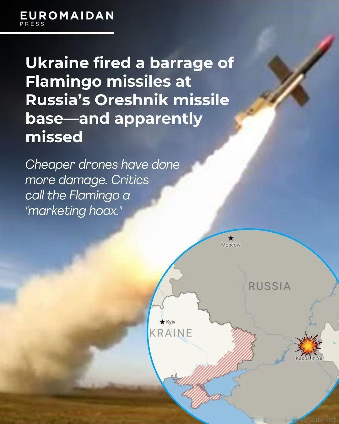 便宜没好货啊,乌克兰,伊朗,也门胡塞那些便宜导弹,都存在命中率低的缺陷。拿着炸机场,炸城市,炸后勤中心最合适。要打精度,那是极高的打偏率。 据报道,乌军最新型火烈鸟巡航导弹,射程3000公里,超过美国战斧式巡航导弹一倍。战斗部1吨,超过美军巡航导弹一倍。 而且,乌军火烈鸟巡航导弹还便宜,价格只有美国战斧式巡航导弹的三分之一。这么多优点,实战效果也很一般,就是精度太低。 据称就连一半打进几百米区域的几率都没有。就是靠价格便宜,装上1吨级战斗部大威力取胜。蒙上了,就是严重损毁,蒙不上,那就不吭声了。只要表示,对俄军重要机场目标进行了打击,就完事了。 最近打击俄罗斯卡普斯京亚尔核导弹训练基地,那么大的发射场都没有命中。多枚导弹就只有1枚打中了外围建筑。 但是,乌克兰军方却可以在宣传战果时候表示,火烈鸟巡航导弹打击和命中了俄罗斯洲际导弹基地。也不能说是吹牛夸张,就是没啥用。这一点上,乌克兰,伊朗,也门胡塞那些便宜导弹都差不多。