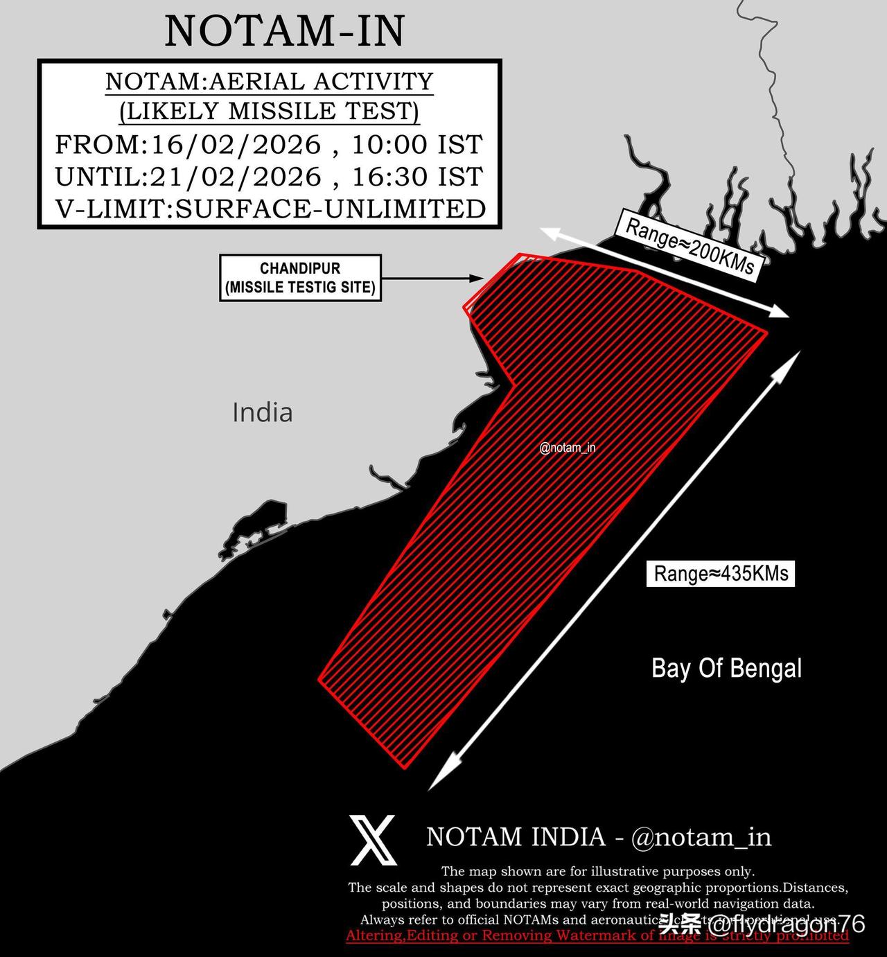 🇮🇳印度武装部队计划于2026年2月16日至21日进行导弹试验。