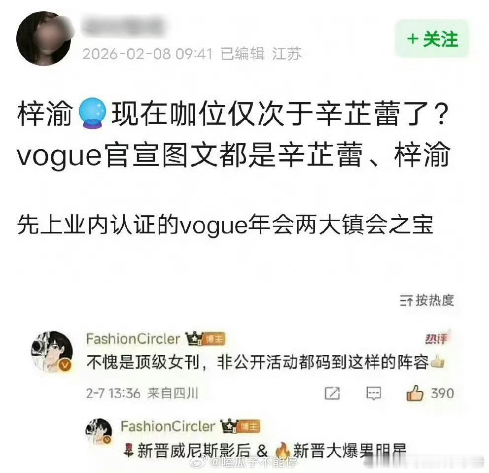 梓渝现在咖位是不是仅次于辛芷蕾了?辛芷蕾梓渝VOGUE双压轴