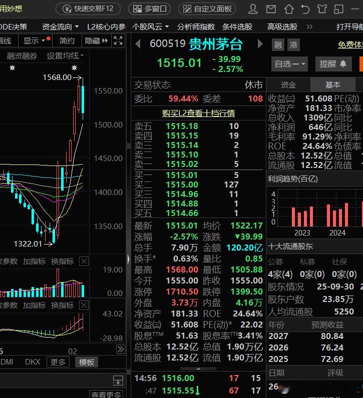 贵州茅台,大概率反弹接近尾声贵州茅台,记得1月29日突然大涨的时候,有人问我后市怎么看?我的回答,白酒在年前有一次弱反弹,可以用来减亏,但无法进行买入操作,因为空间太小。贵州茅台的这一波反弹,可以说超过了8成的白酒,我觉得除了年底旺季,指数方面的需要也是有很大原因的。对于国内的消费,我认为不是某些名人说的,有钱不敢花,而是居民负债过重导致的。经济上行阶段,收入可以扛得住负债,但是一旦下行,就会出现收入显著下降现象,而负债不会因为收入下降而下降,所以你必须缩衣节食。如何降低负债,现在是没有任何办法的,只能通常时间慢慢的消化。下周是春节长假的最后一周,我认为留给贵州茅台的时间不多了,我认为一旦五日线失手,反弹就正式结束。欢迎加入我们的免费交流群财经股票