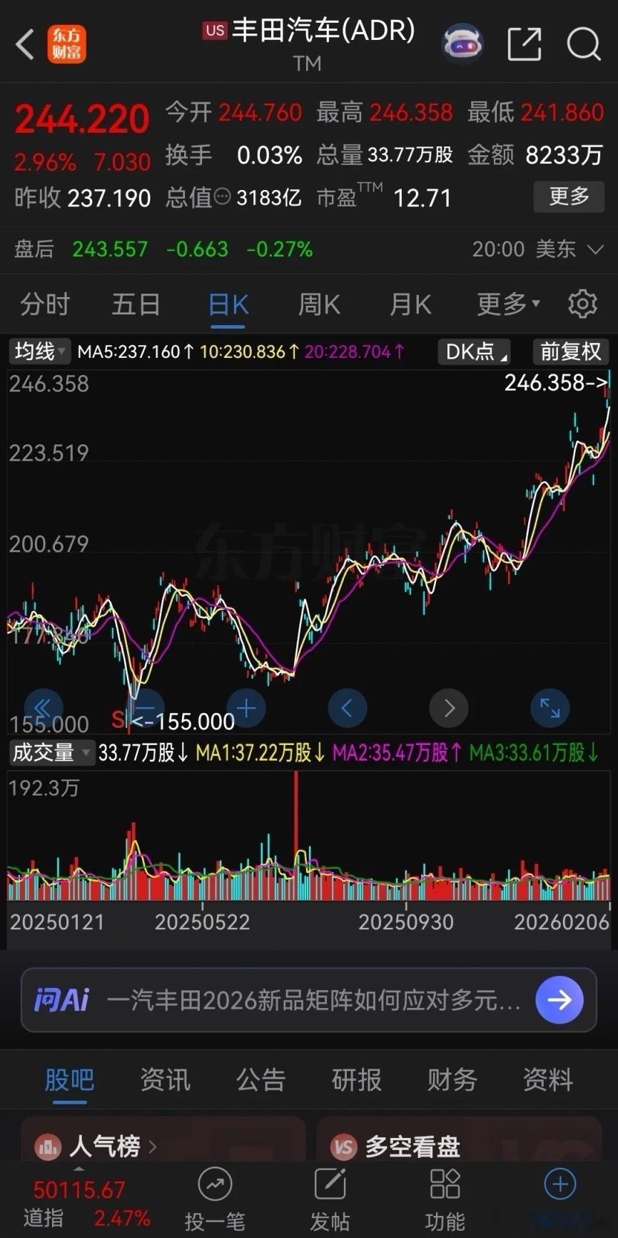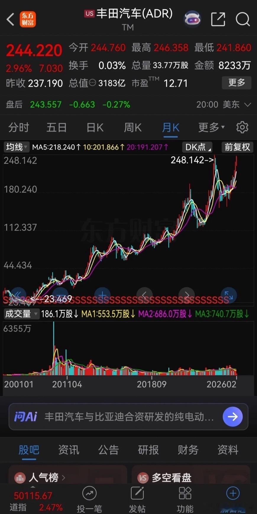 都说现在是新能源的天下,油车不行了,但为何丰田汽车的股价却能屡创新高呢?