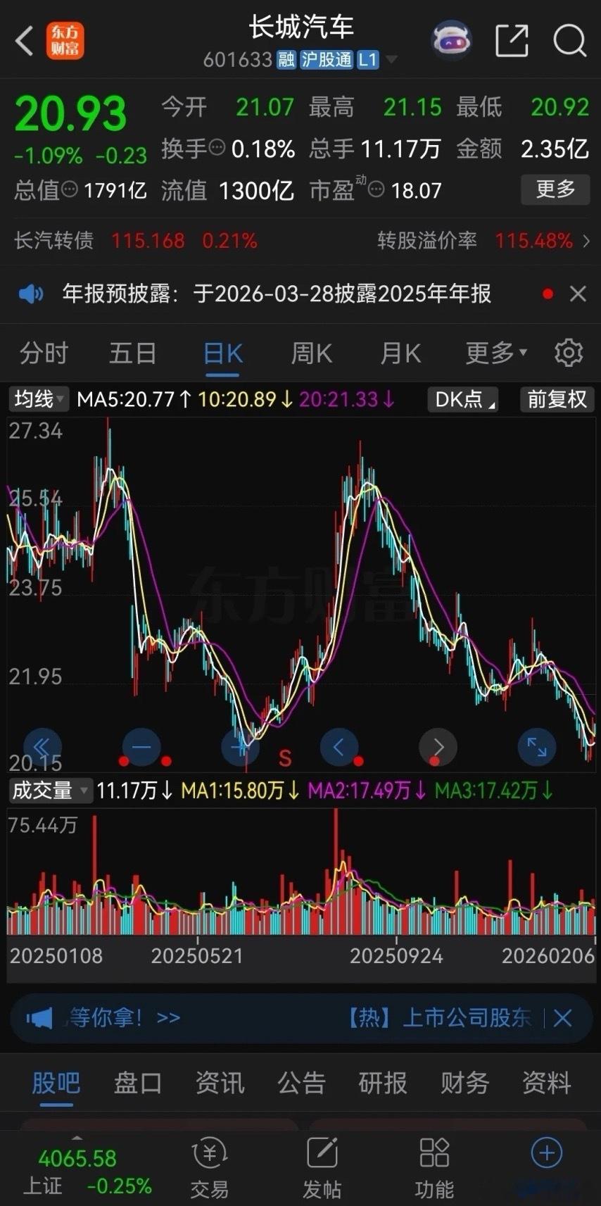 再看国内的长城、长安、上汽,跌得一个比一个狠。长城汽车近一年来下跌26%;长安汽车近一年来下跌23%;上汽集团近一年来下跌29%。