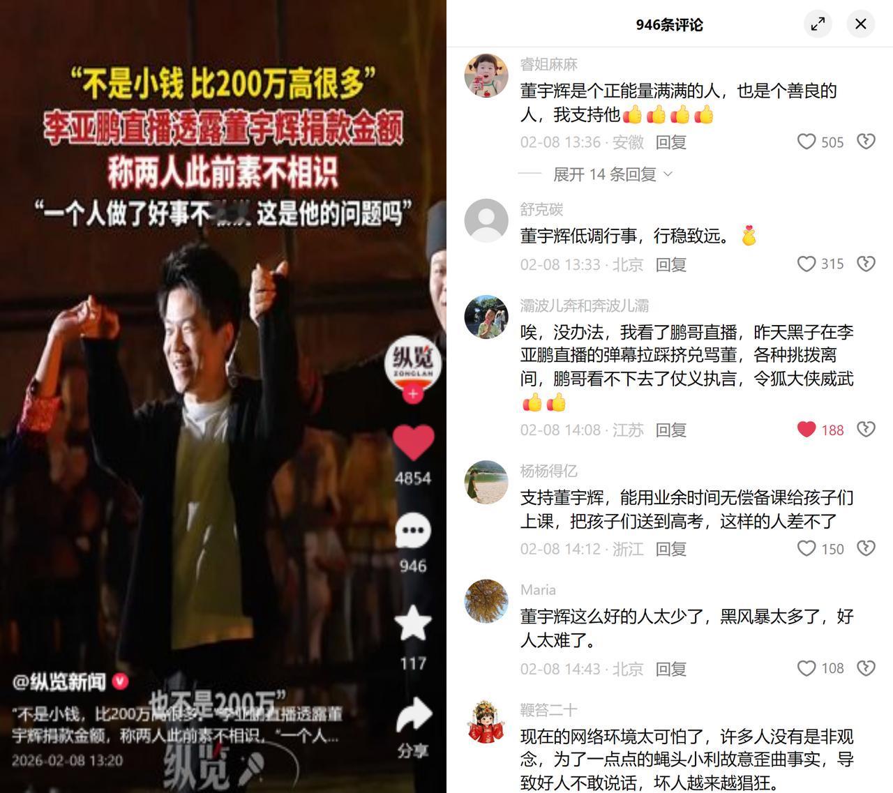 素不相识捐超200万,还不敢说。 医院遇难关时,董宇辉第一时间通过中间人捐了远超200万的款,全程要求保密,跟李亚鹏此前素未谋面。结果直播里有人还在黑他,李亚鹏直接拍桌反问:好人做好事不敢说,是他的问题吗? 这事儿看着憋屈,倒也不意外。现在的网络环境,行善太容易被污名化,捐多了说炒作,捐少了说作秀,连匿名都能被揪着猜动机。善良的人没变怂,主要是有些戾气太重的人,见不得别人好,拿着放大镜挑错,把正常人的善意都逼得藏起来。 本来助人为乐是件敞亮事儿,如今却要像做地下工作似的。这种小心翼翼的善良,比捐款本身更让人动容。 哪天要是好人做好事,能大大方方不用躲,那才是真的进步。