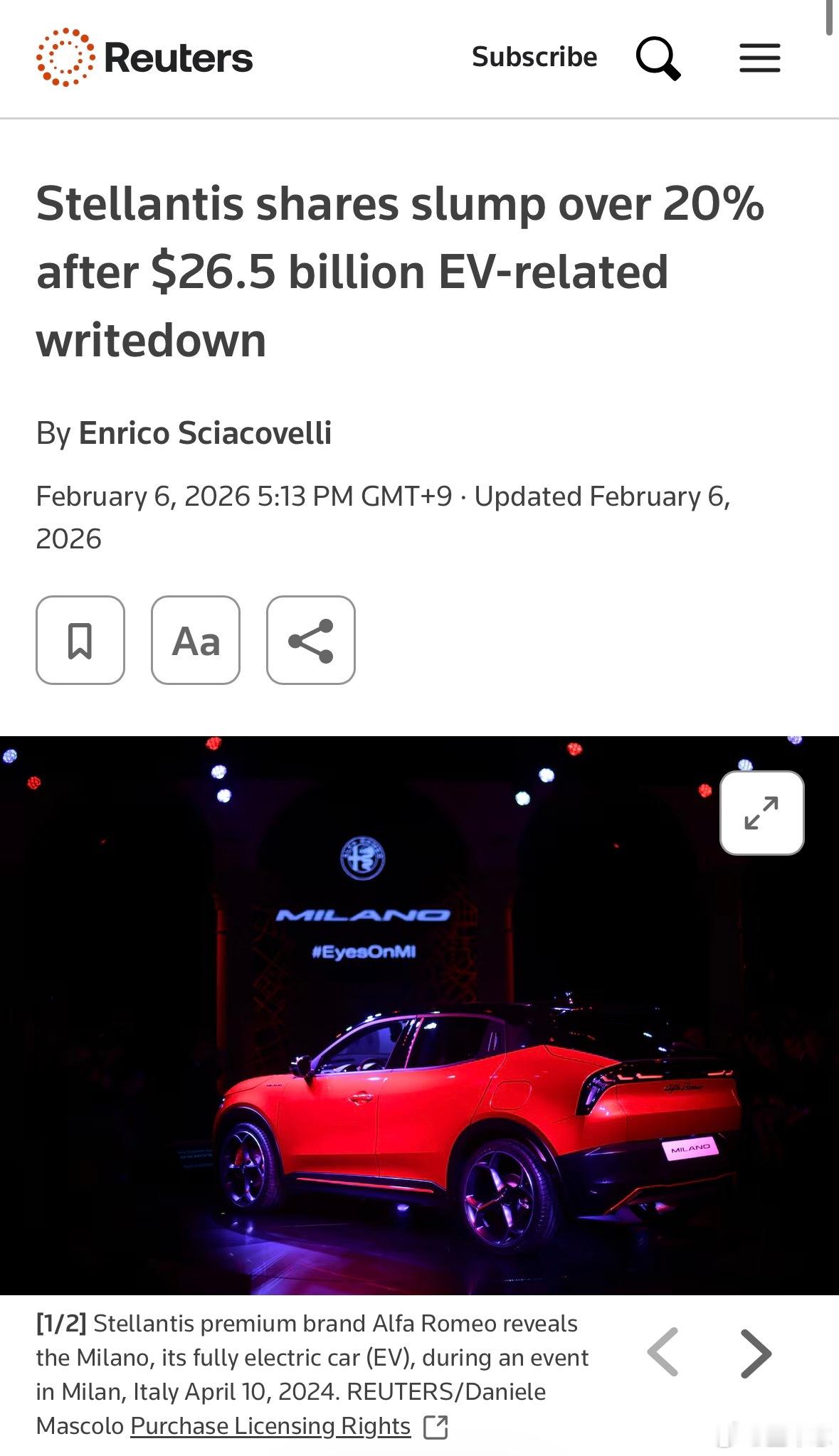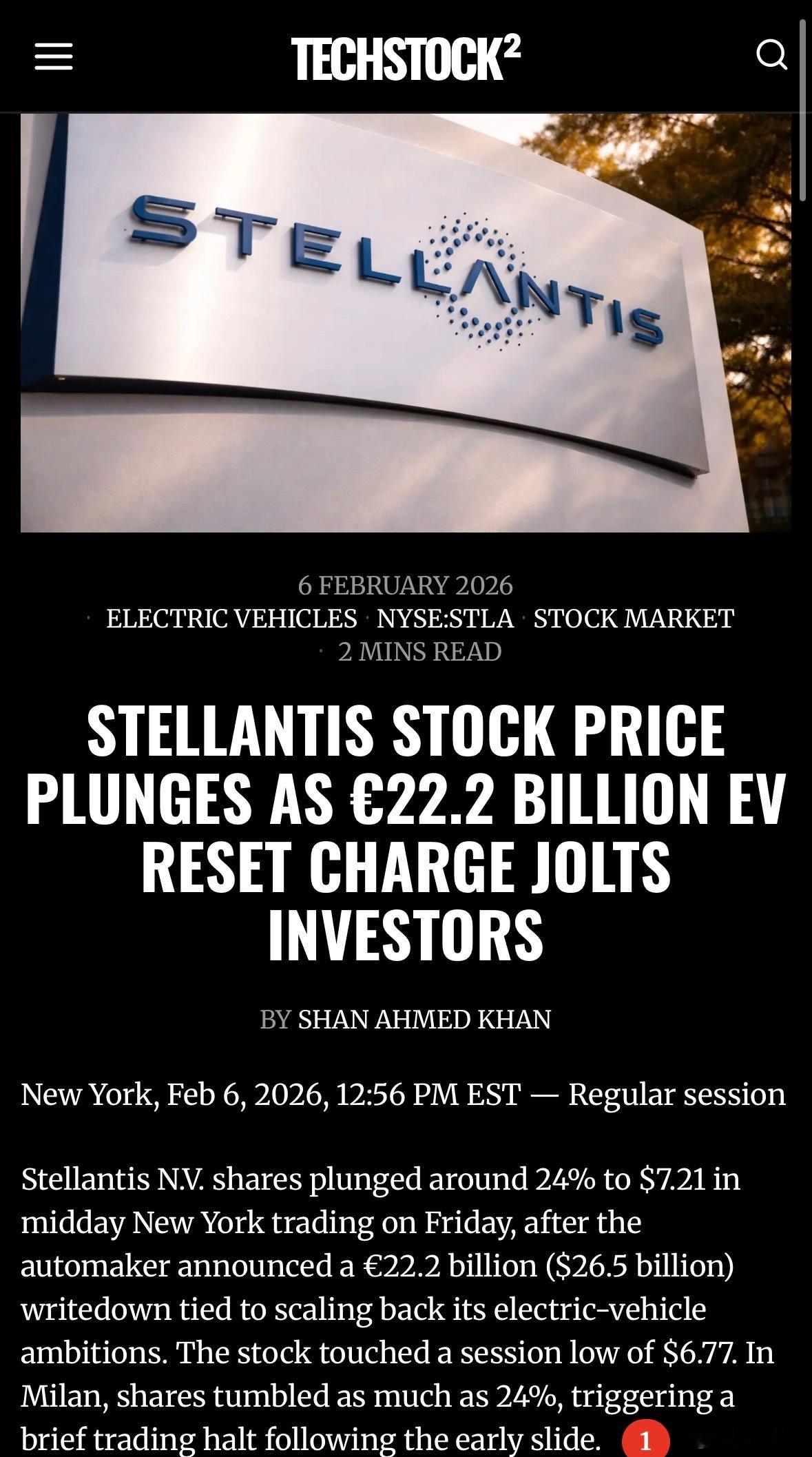 斯特兰蒂斯并不是电动化做得不够早,而是摊子铺得太大。14个品牌同时推进电动化,平台、软件、供应链、产能全部重叠消耗,欧洲市场又遭遇需求疲软、补贴退坡,美国市场电动车渗透率增长放缓,结果就是成本爆掉。再加上CEO公开表态“不再追求激进转型目标”,其实等于承认之前节奏判断错了。资本市场最怕的不是亏损,而是方向反复。这些信号叠加在一起,市场自然会先砍仓再说。