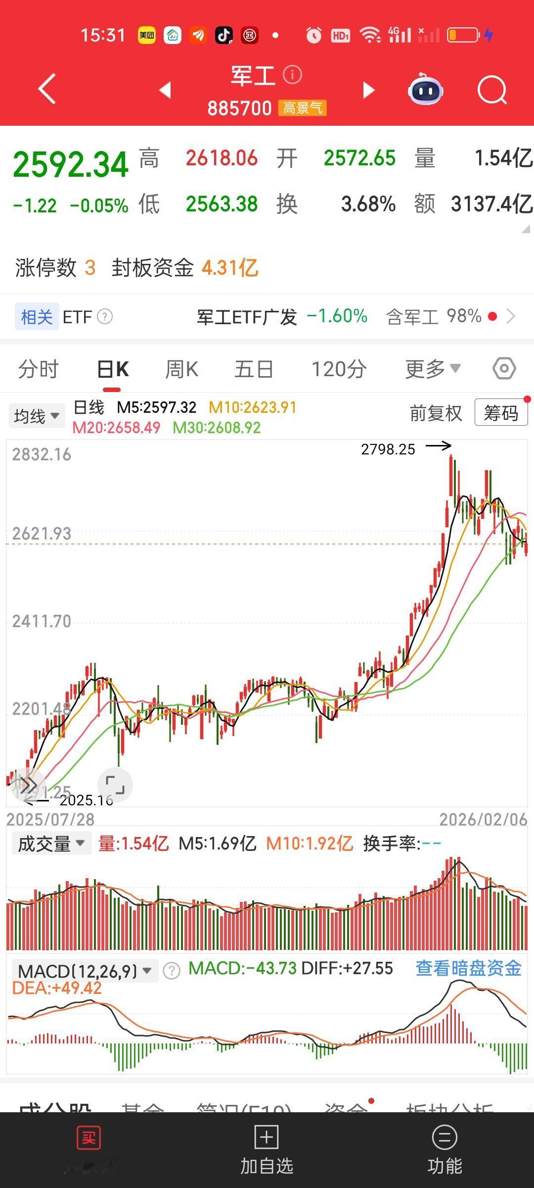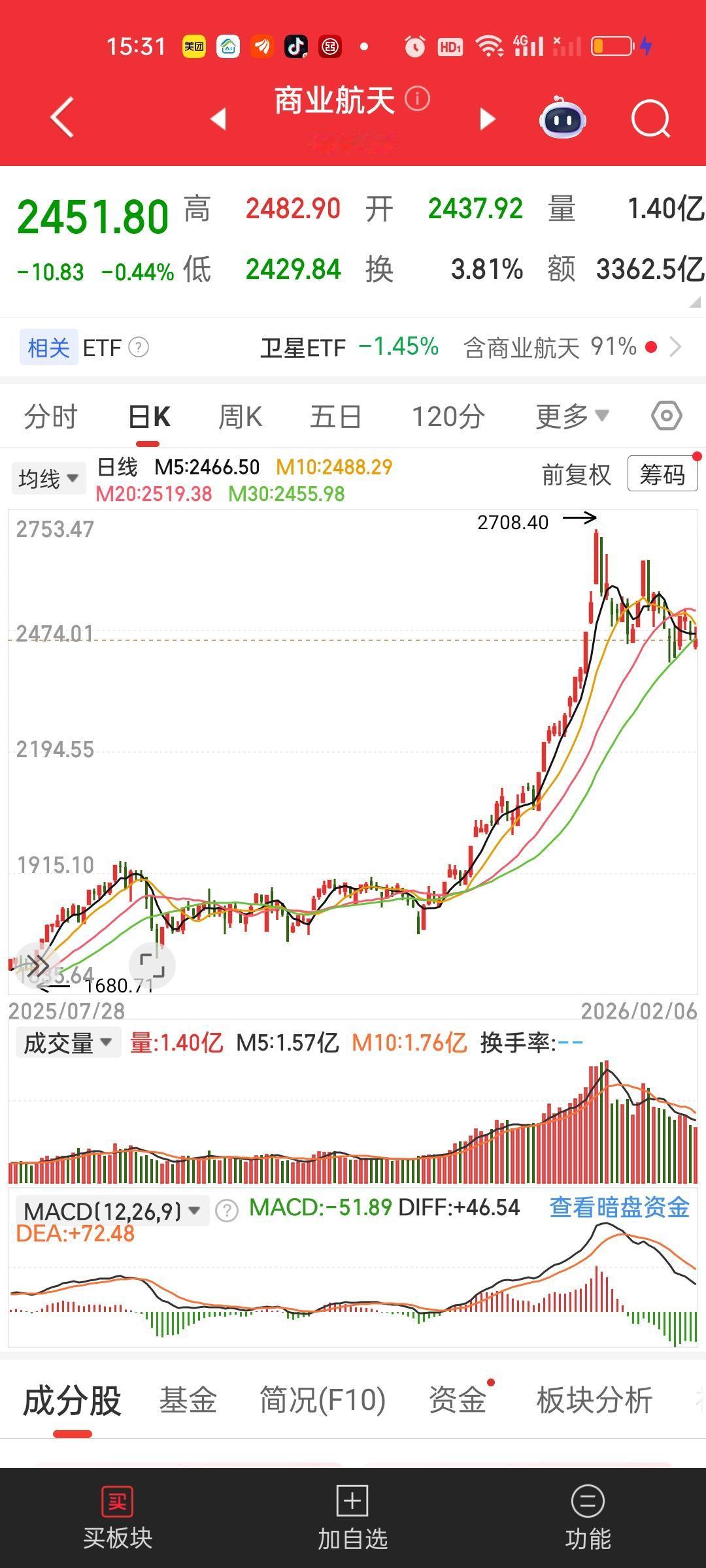 商航板块与军工板块有着高度关联性。直到现在我依然坚定认为商业航天一定是2026年一整年的主线。不管别人怎么看,我从不涨了看涨跌了看跌,我坚持自己的观点不变! 但一个板块再好,它也不可能只涨不跌。从某个角度讲现在的调整反而是好事情,现在调整的越充分,调整的时间越长,后面上涨的高度就越高,利润空间也越是巨大。耐得住寂寞,才能守得住繁华。