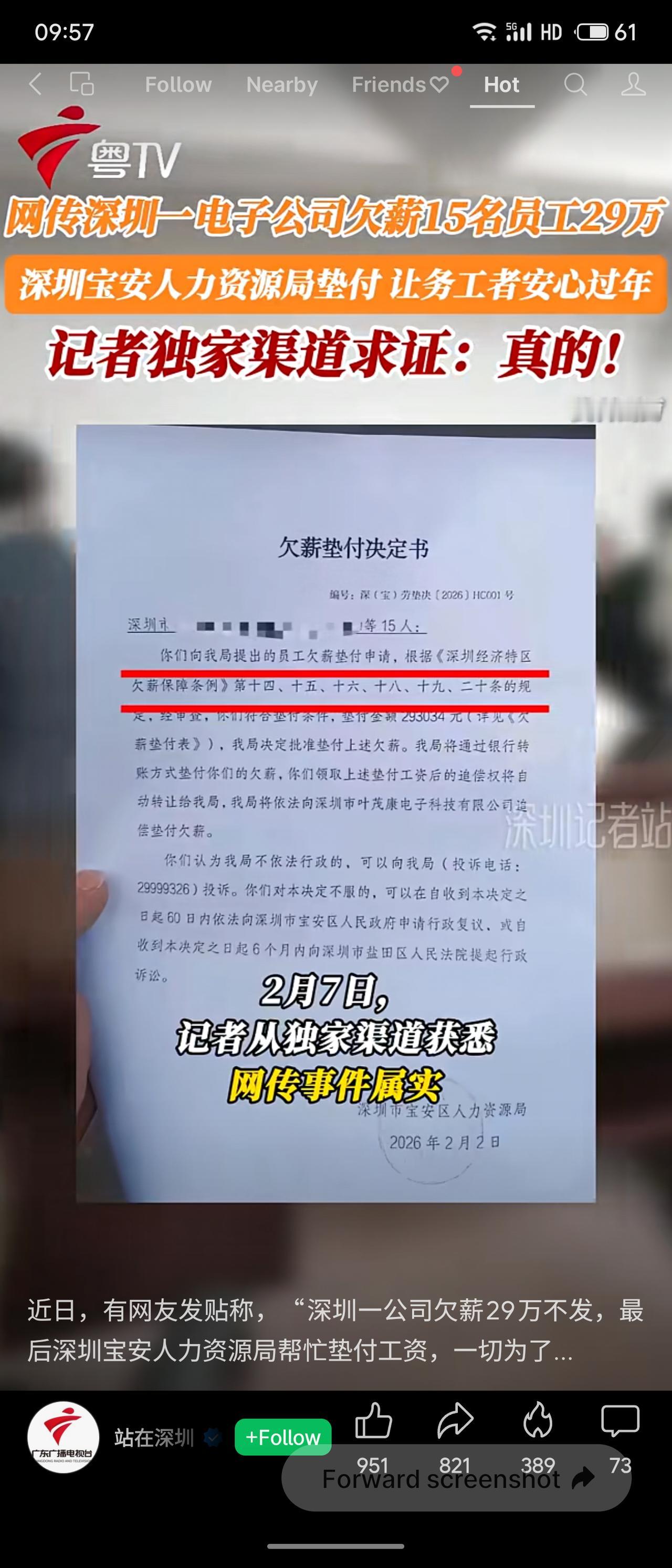 深圳宝安人社局垫付企业欠薪29万,助15名员工安心过年。此举体现了深圳欠薪保障制度的高效与兜底作用,彰显了政府对劳动者权益的重视,但也反映出部分企业资金链紧张的现状。