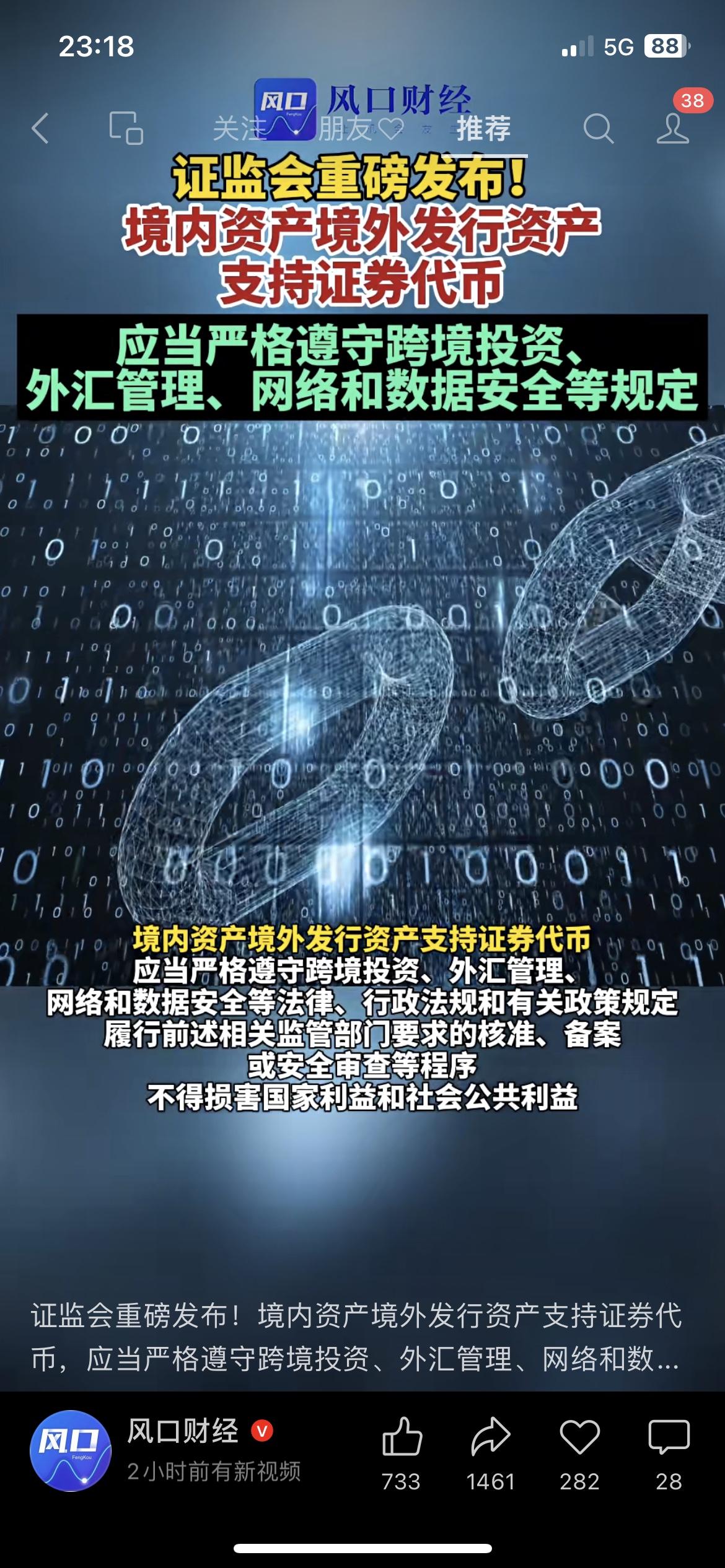 证监会放大招!这类境外发行代币被严管了! 证监会发布新规,明确境内资产境外发行资产支持证券代币,必须遵守跨境投资、外汇管理等规定,不得损害国家利益。简单说,就是给这类创新金融产品戴上“紧箍咒”。 市场有风险,投资需谨慎。 金融创新不是无缰野马,安全才是底线。 你会关注这类代币化金融产品吗? 证监会新规 资产支持证券代币 财经热点