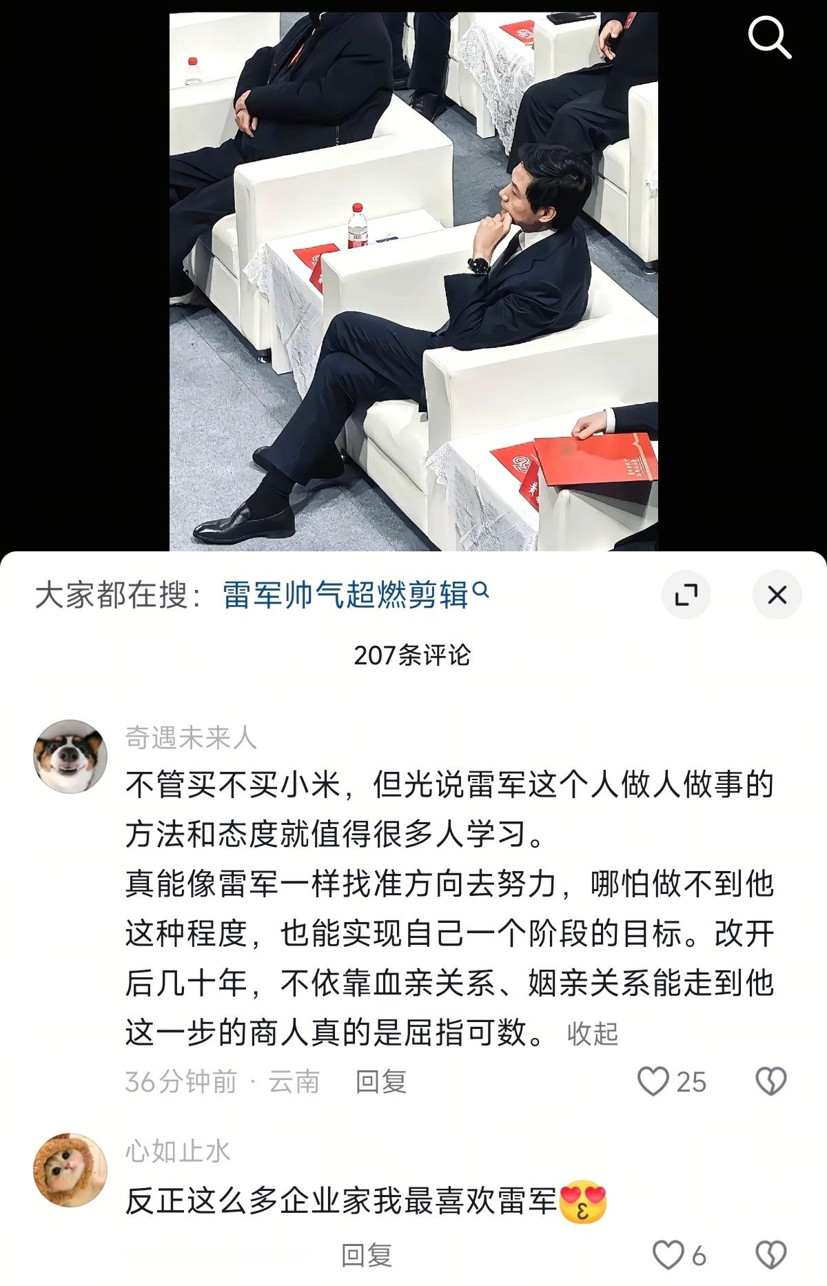 真能像雷军一样找准方向去努力,哪怕做不到他这种程度,也能实现自己一个阶段的目标。改开后几十年,不依靠血亲关系、姻亲关系能走到他这一步的商人真的是屈指可数。