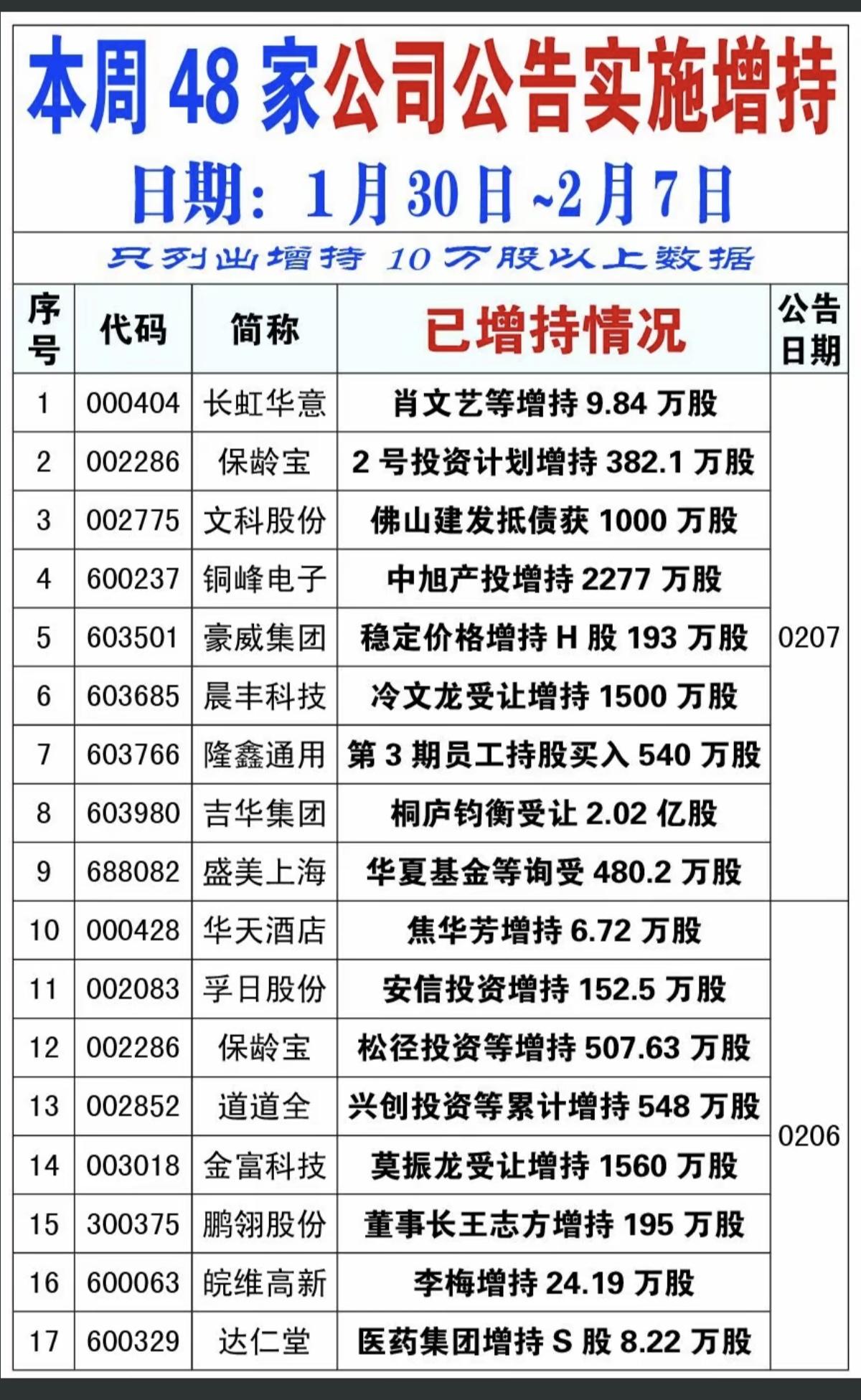 2.8周日 本周:48家公司发布增持计划! 能够在这个点位增持的,都是好公司,说明高管或股东非常看好企业未来的发展! 值得收藏跟踪。 48家拟增持公司一览: