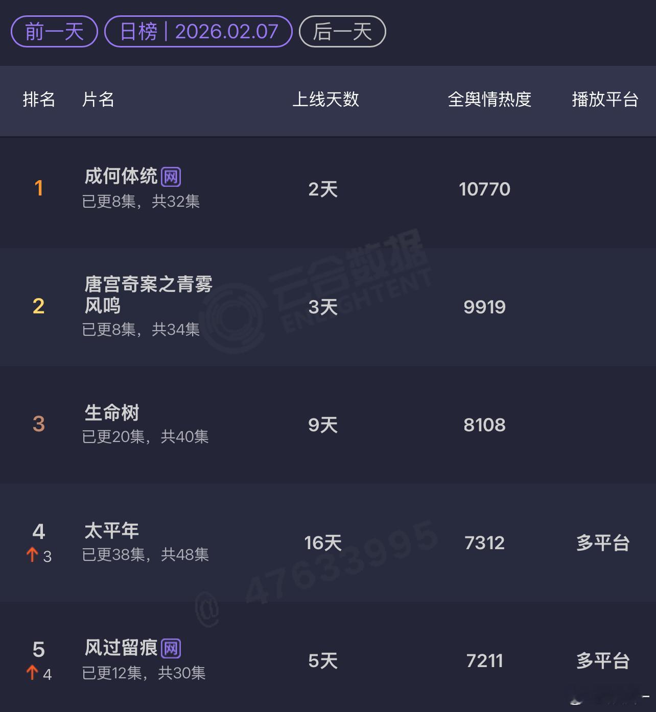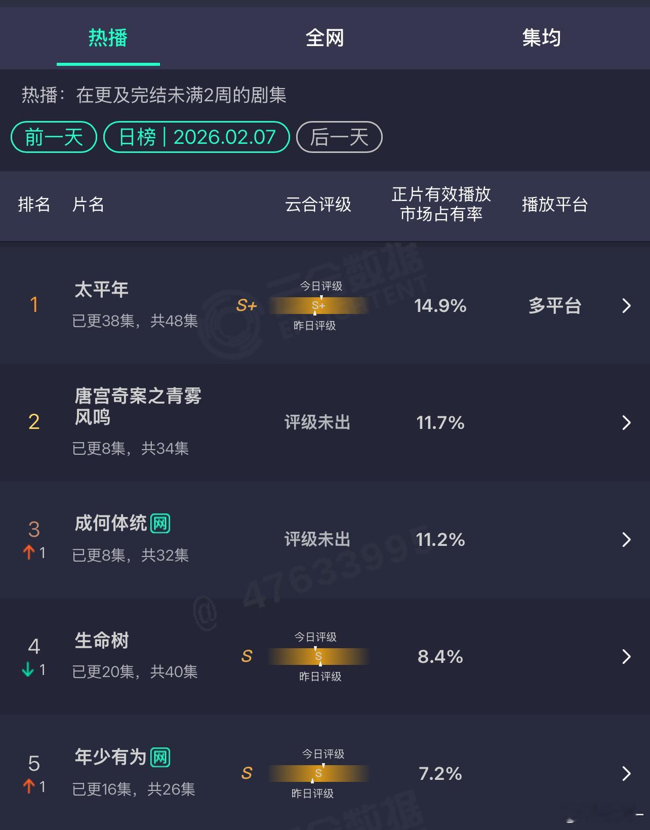 云合长剧市场不同题材的受众群体完全不同。《太平年》和《生命树》都绝对算得上是正