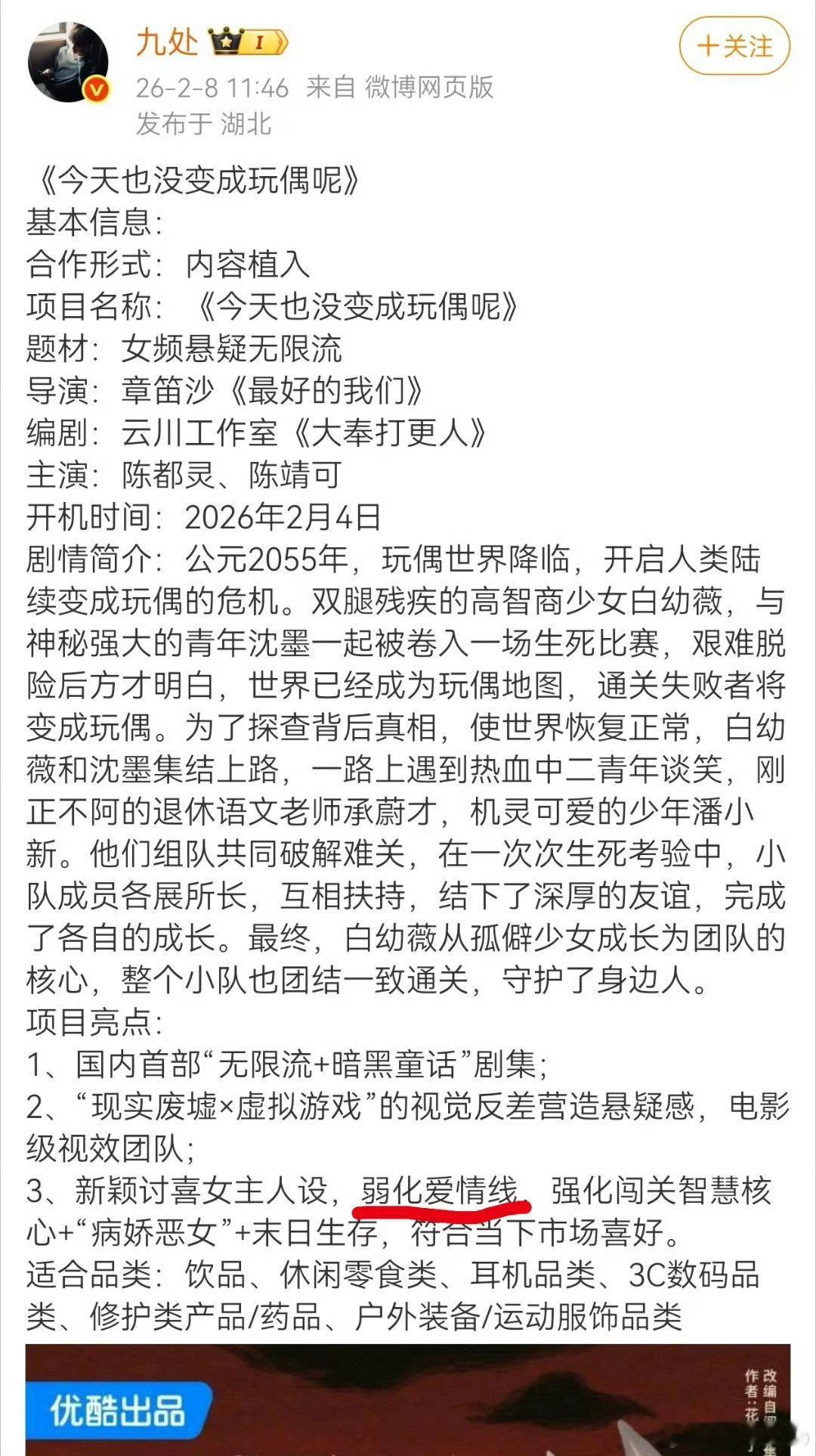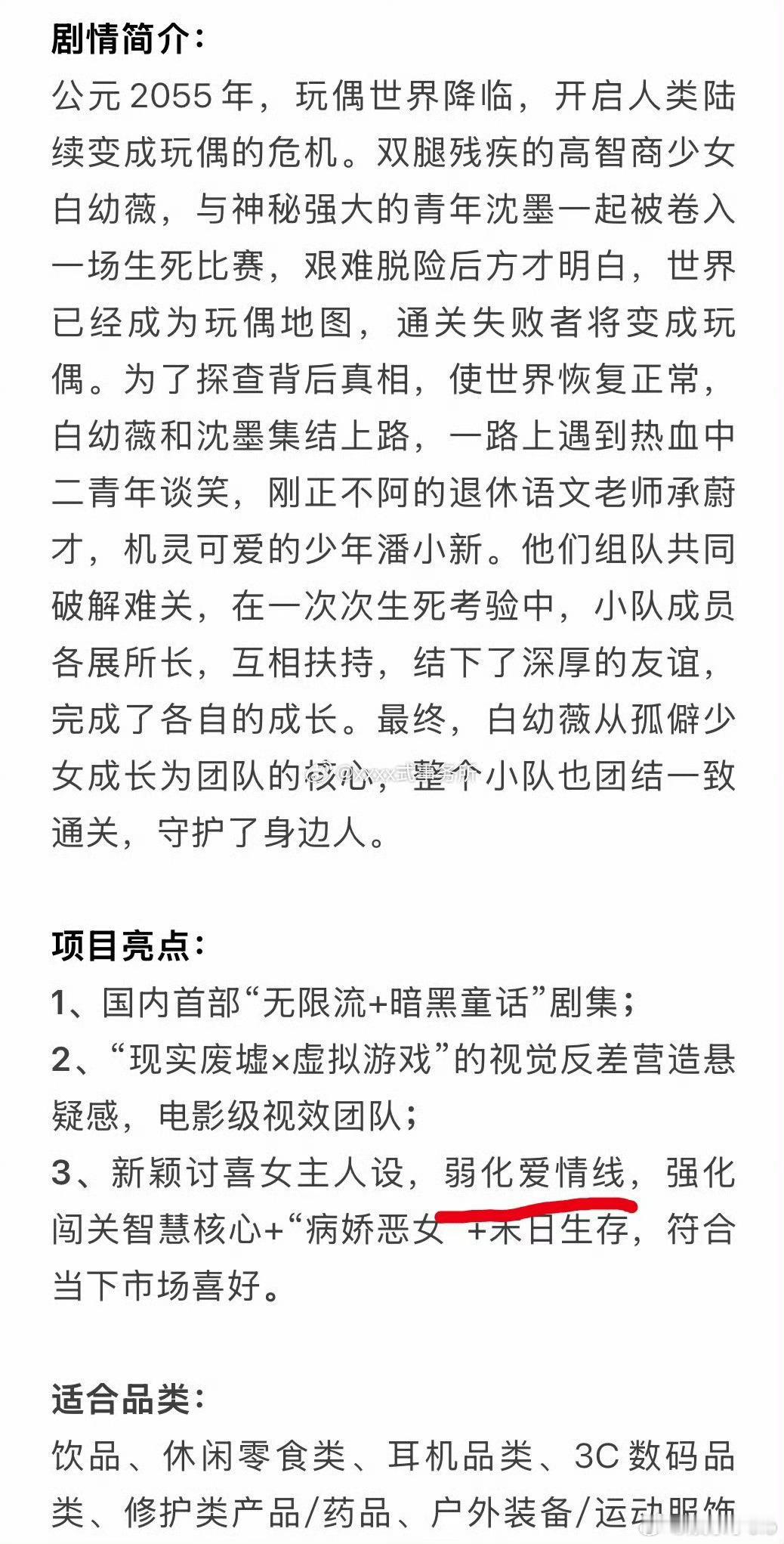 陈都灵《今天也没变成玩偶呢》开拍才四天就开始招商了,主打“国内首部无限流➕暗黑童