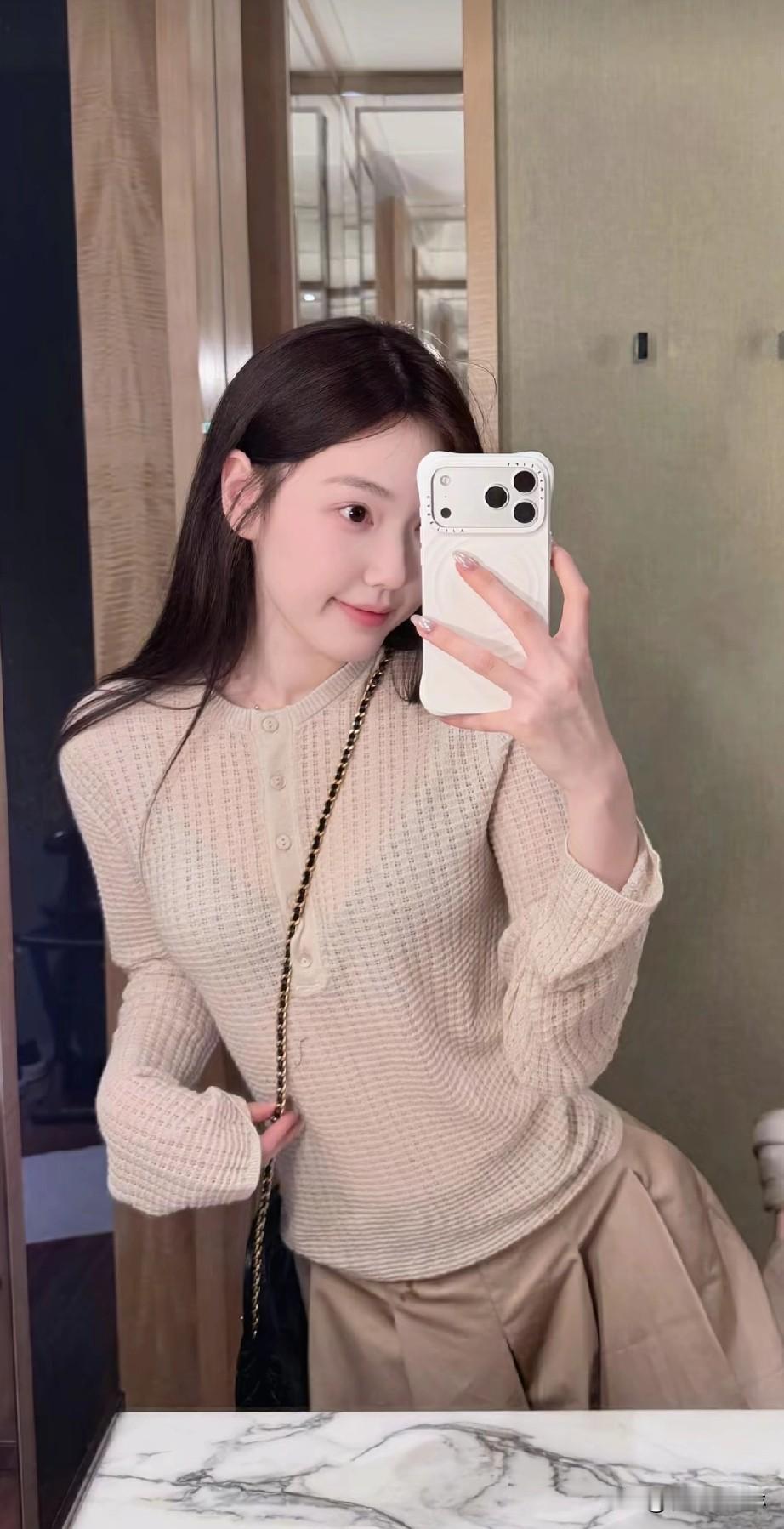 温柔米色毛衣穿搭,冬日暖阳下的甜美自拍