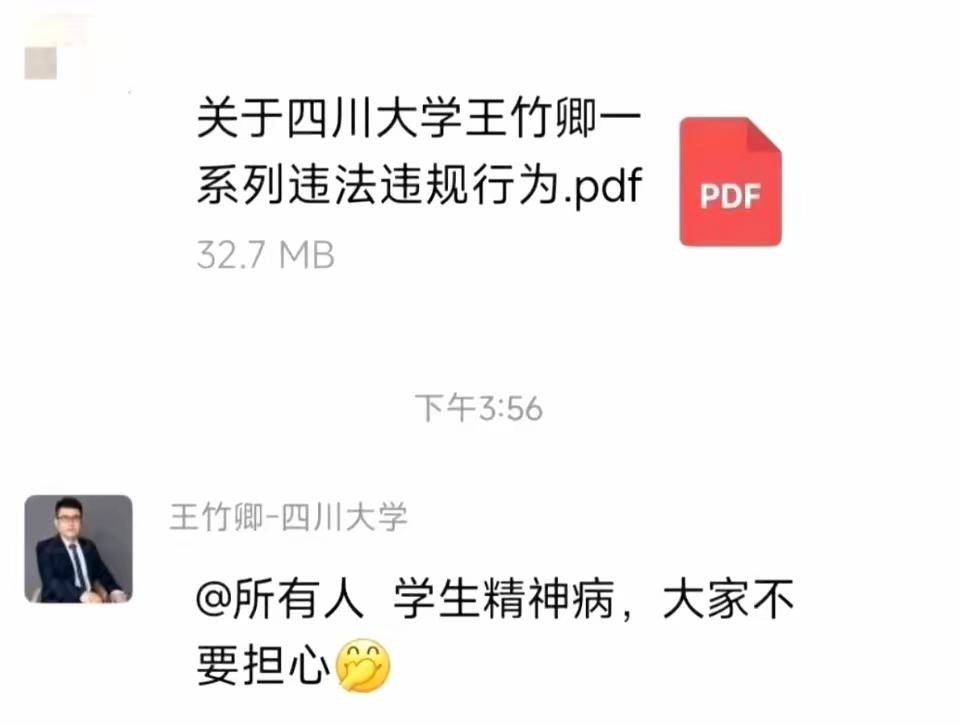 四川大学王某某被学生举报,师德不端、财务逃税、学术作假等问题我忍了,没想到他亲日贬中,把重要会议定在9月18日这个时间。 被举报后,他还在朋友圈发文:坦坦荡荡,不忘初心。还称参与举报的学生有病。 据学生举报,伪造试验数据,用虚假科研成果申报项目;成立公司让学生挂名领取工资,虚开发票;经常威胁学生延迟毕业,让学生处理私人事务。 被举报后,他还厚颜无耻报案,觉得自己是被诽谤。