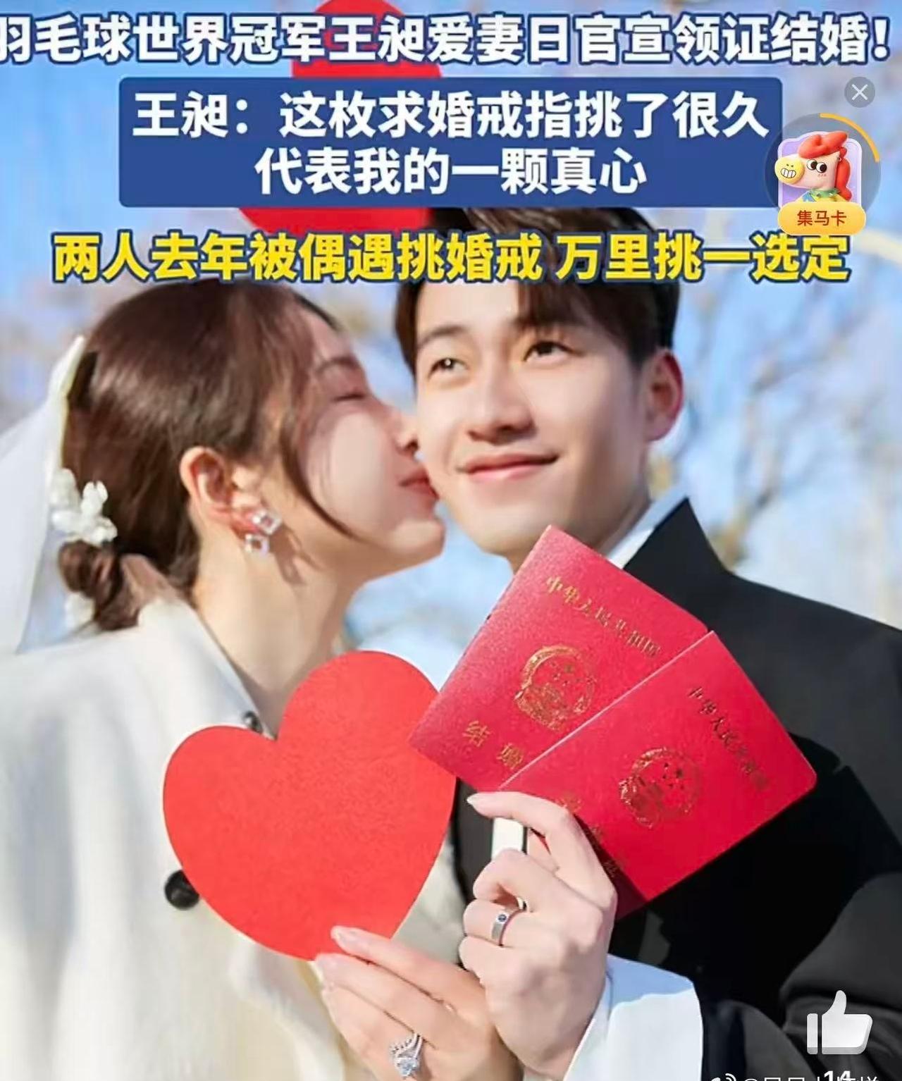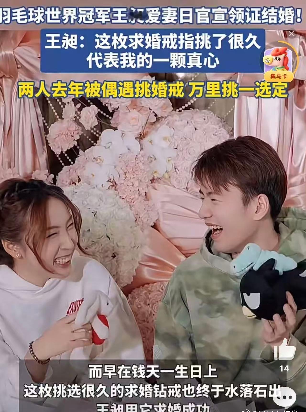 一年精心挑选,只为最对的人。王昶求婚戒指藏满诚意,爱心戒代表真心专属,与钱天一双向奔赴,体育界神仙爱情太甜,恭喜领证!