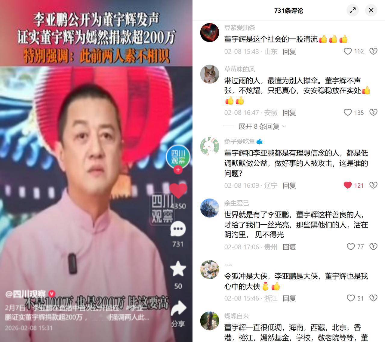 董宇辉匿名捐超200万做公益 李亚鹏直播证实,他和董宇辉此前素不相识,这笔钱捐给了嫣然天使基金,而董宇辉从没在任何账号提过这事。 这事儿放在当下,真的挺难得。现在不少公益变了味,先发声明造势,再晒捐款凭证,把行善做成了涨粉、立人设的工具。可董宇辉不一样,素不相识就砸钱,做完还藏着掖着,连个名声都不图。 更实在的是,这笔钱能帮244到256个贫困唇腭裂孩子完成免费手术,那些原本可能因没钱错过最佳治疗期的孩子,能重新笑着说话、吃饭,不用再因容貌自卑。 在这个凡事都要算投入产出比的年代,这种不带任何附加条件的善意,才是最金贵的。毕竟,比起做了好事,悄悄做好事的这份纯粹,才最让人感动。