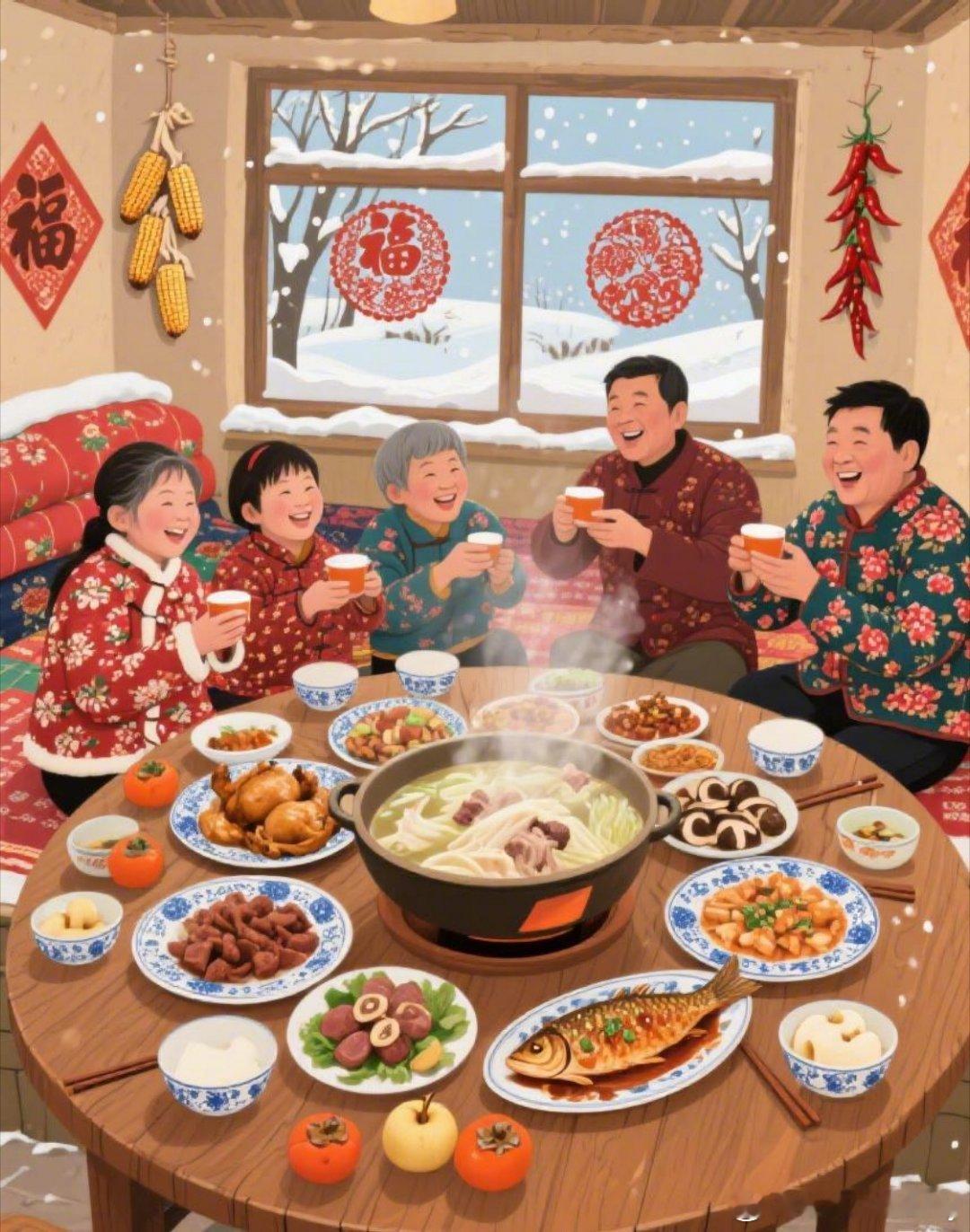 东北的年味是从高铁站散发开的第一次在高铁站感觉像是个小辈冻梨、糖葫芦、灶糖免费尝,五谷拼成的“福”字、红辣椒玉米串装饰,年味小铺香到挪不动脚,东北的年,是热乎的、是喧闹的、是带着乡愁的,高铁一响,回家的路,就有了温度!