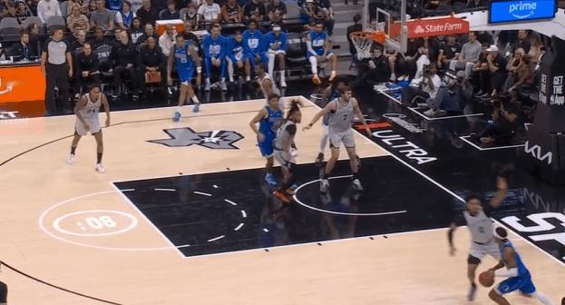 P2马绍尔接马丁手递手传球后一记“假抛真传”点起科内特,随后找到幽灵区埋伏的巴格利,巴格利接球杀入篮下双手暴扣得手。