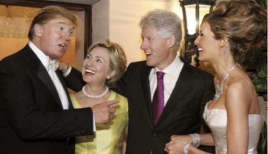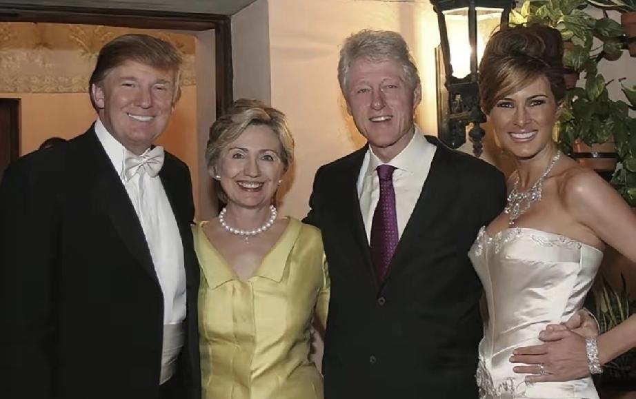 特朗普和第三任妻子梅拉妮娅举办的婚宴上,气氛活跃;特朗普、克林顿两任总统及夫人谈笑风生。 特朗普视克林顿为知己,称赞希拉里是位了不起的女人。 他们互为好友,特朗普带着俩儿子也和希拉里合过影。 谁也没想到,特朗普和希拉里日后会成为了竞争对手。