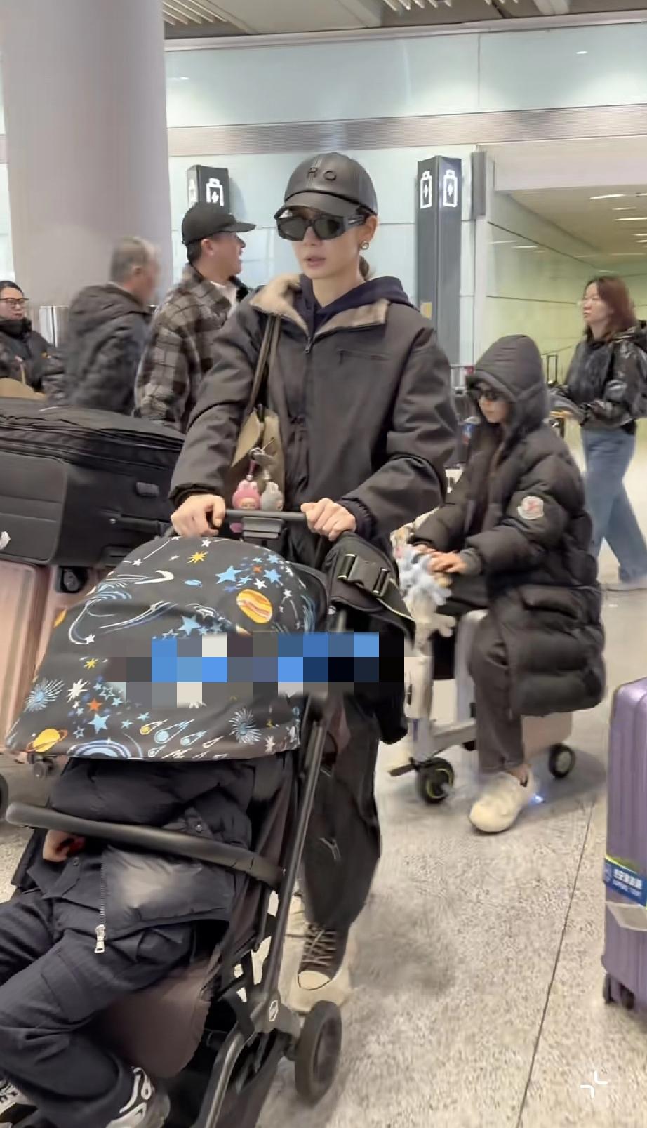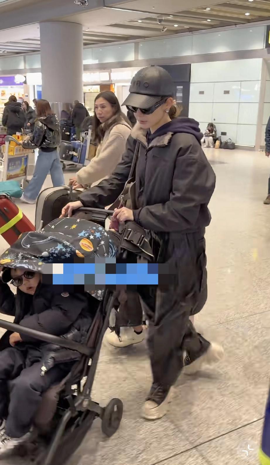 戚薇1拖2,儿子像童星,女儿基本独立,她却很疲惫! 2月8日,戚薇外出旅游回来,带着一双儿女,一家三口捂得严严实实,都是穿深色的衣服,在机场并没有什么辨识度,很多人根本没认出他们。 Lucky11岁了,自己坐在行李箱上,戴了墨镜,穿了厚厚的黑色风雪衣,看着个子挺高的,基本上能独立了。 她的五官气质隐约中间还有戚薇的影子,她小时候就被称为“小戚薇”,现在长大了还是有妈妈的基因,二人一看就是亲生母女。 戚薇则推着四岁的儿子,一脸疲惫,虽然戴了耳环,但素颜出镜特别苍老,一看就是中年人,毕要照顾两个孩子,时时刻刻得操心,真不容易。 戚薇的儿子4岁了,戴着墨镜,同样穿了黑色的衣服,悠闲自得地坐在推车里,让妈妈推来推去,孩子太小了,什么都不懂,只知道这样舒服。 儿子的正脸照曝光,虽然戴了墨镜,但能看出来皮肤很白,挺可爱的,有点像小时候的李承铉。 戚薇这么看个子一点都不高,穿了很厚的厚底鞋,还是像1米65,素颜状态也比较差,皮肤暗黄,精神很疲惫,并且她脸上好像有整容后遗症,脸有点垮。 总之,戚薇这样的已经42岁了,除了工作还得1拖2带两个孩子出去旅游,看着赚钱多,实际上并不轻松!