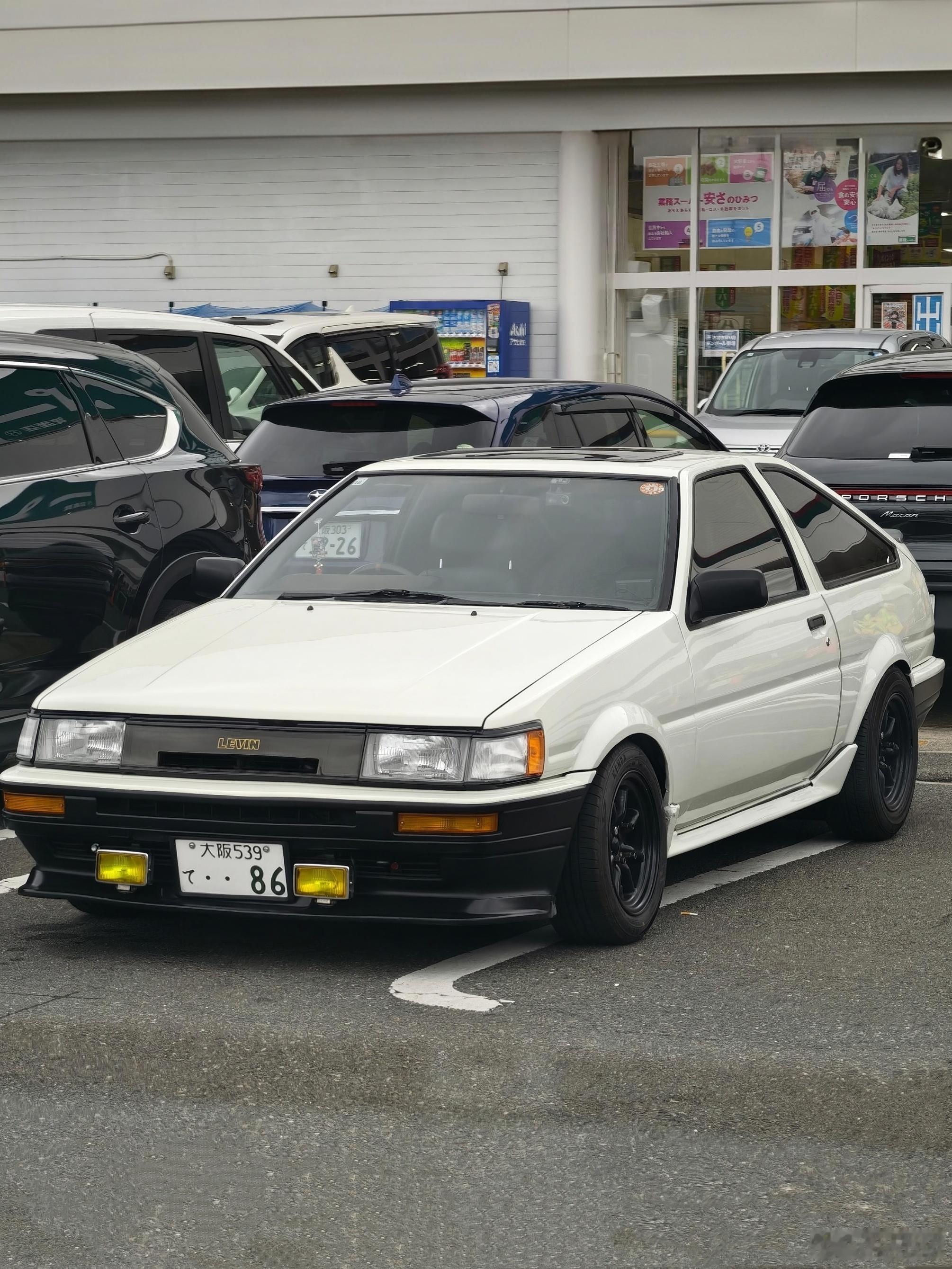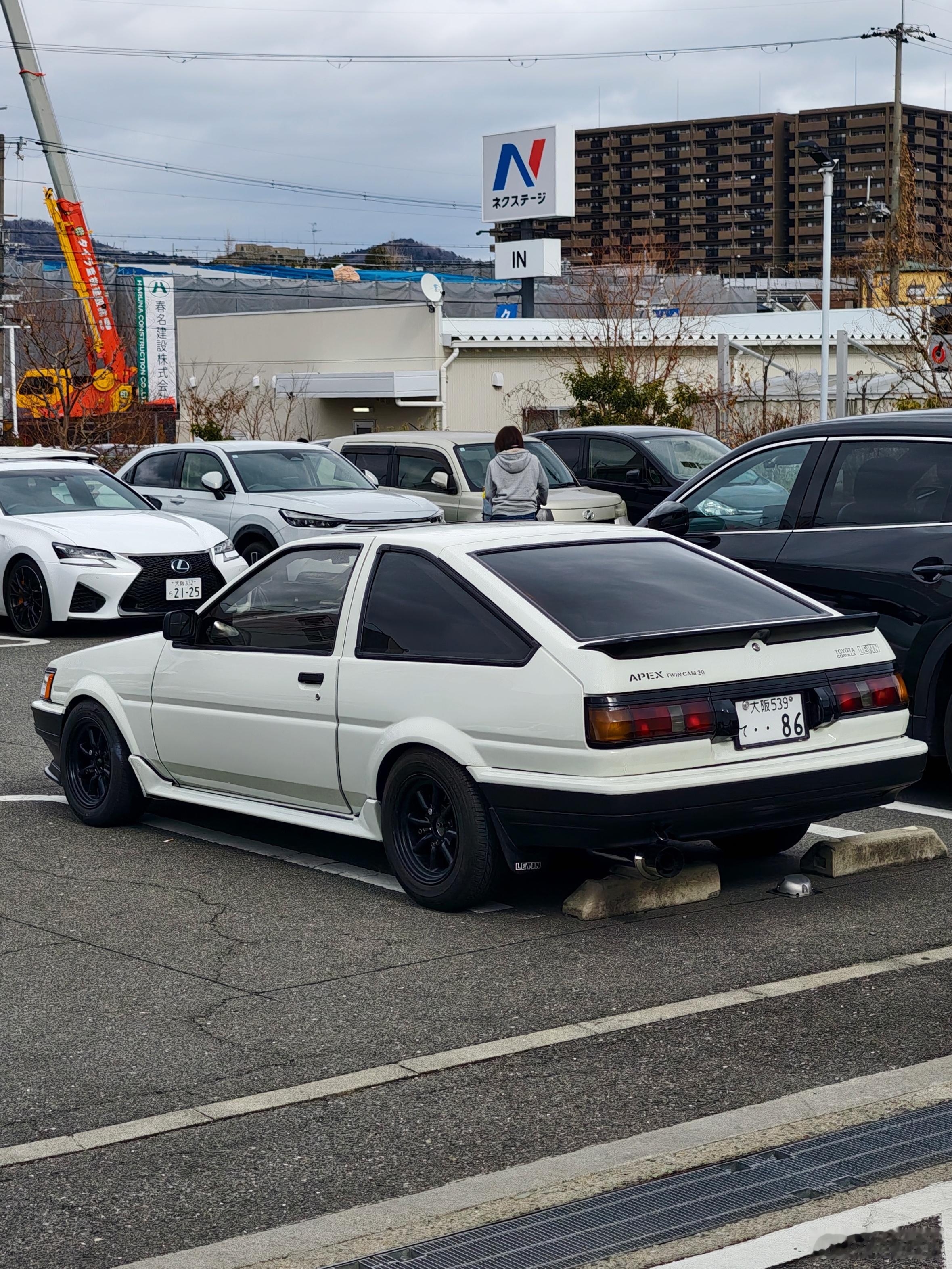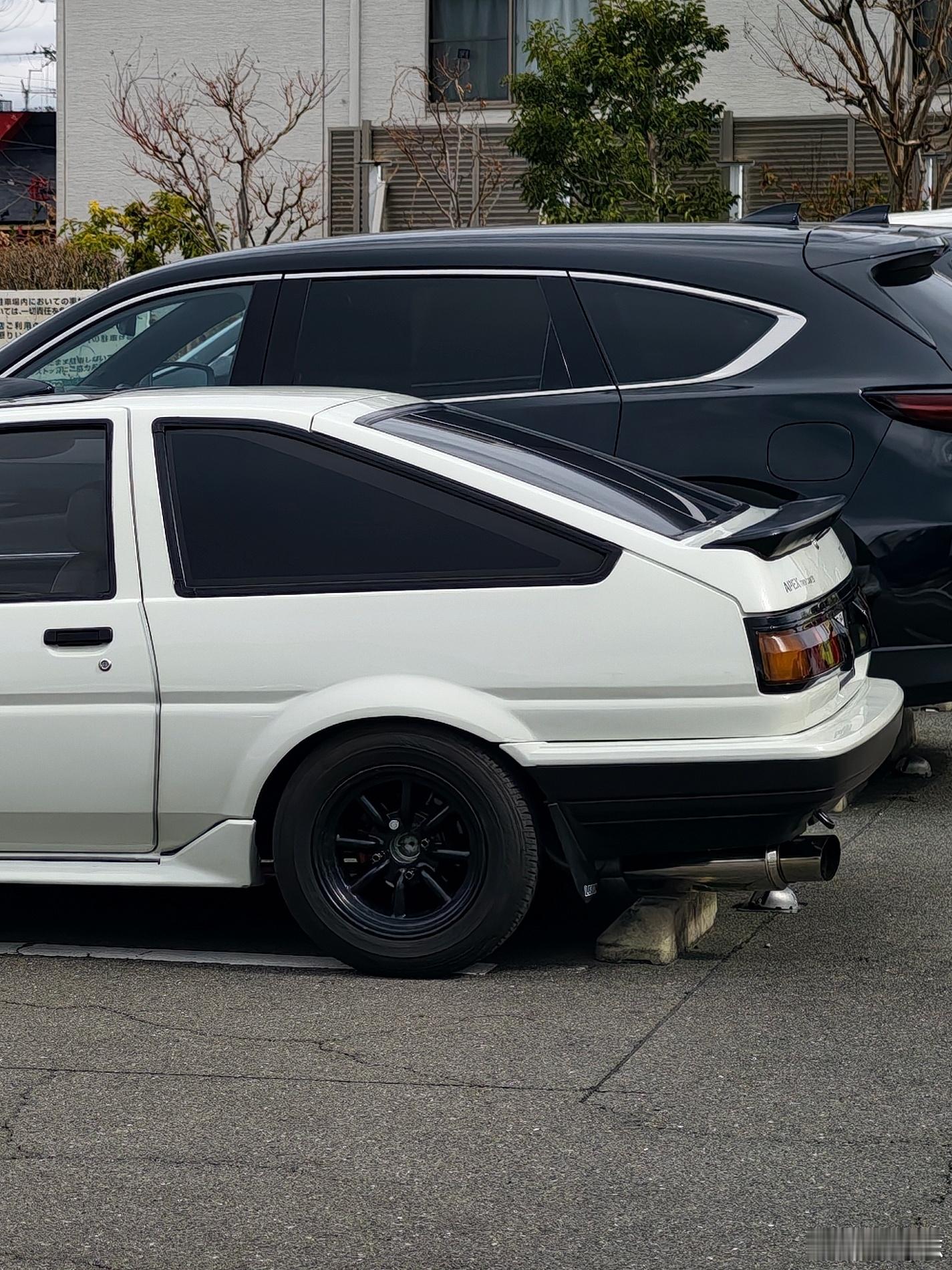 型车街拍偶遇来买菜的 AE86。为什么看着跟拓海那辆不太一样?因为这辆是 Corolla Levin AE86 APEX。