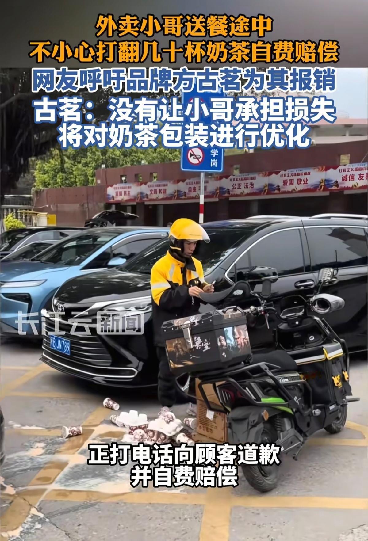 一个外卖小哥的失误,却让全网看到人性的光芒! 32杯奶茶“啪啦”摔地上,黏糊糊的液体溅得到处都是,小哥蹲在地上手忙脚乱地捡,满脸的自责和慌乱——这画面,像极了生活里突然被绊倒的我们。谁不知道,这几十杯奶茶的钱,可能就是他辛苦跑一天的收入?可他没有找借口,甚至没抱怨一句“纸箱包装太沉”,而是立刻给顾客打电话道歉,主动说要重新下单送过去。成年人的担当,原来就是摔了跟头,也得咬着牙把责任扛起来! 这事儿发酵得也快。网友把视频发到网上,古茗奶茶公司立马行动:全额承担了小哥的损失,连配送费都补上了,还承诺改进包装。你看,一个普通人的失误,最后没变成“压垮骆驼的稻草”,反而成了照见社会温度的镜子。小哥没躲没逃,公司没推卸责任,网友也没冷嘲热讽,甚至有人留言:“要是换作我,可能早就急哭了。”——这世道,原来缺的不是善良,而是愿意先迈出一步的勇气。 有人或许会说:“没热度的话,小哥可能得自己掏钱。”但你看,当一个人主动担责,当一群人愿意发声,当企业不甩锅反而改进,这不就是现实版的“善有善报”?生活里难免有“打翻奶茶”的意外,可要是人人都像小哥那样不逃避,像古茗那样不推责,像网友那样不冷漠,那些“意外”会不会变成照亮彼此的星光? 这个世界或许不完美,但当善意流转时,我们都能成为照亮彼此的微光。如果你是那位小哥,会怎么做?
