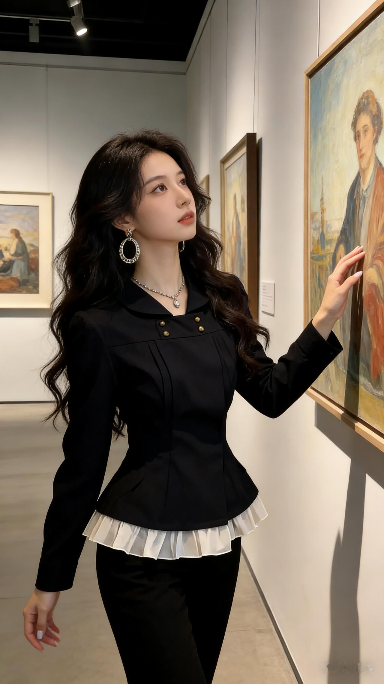 艺术馆里的优雅时光,黑白配色的时尚穿搭