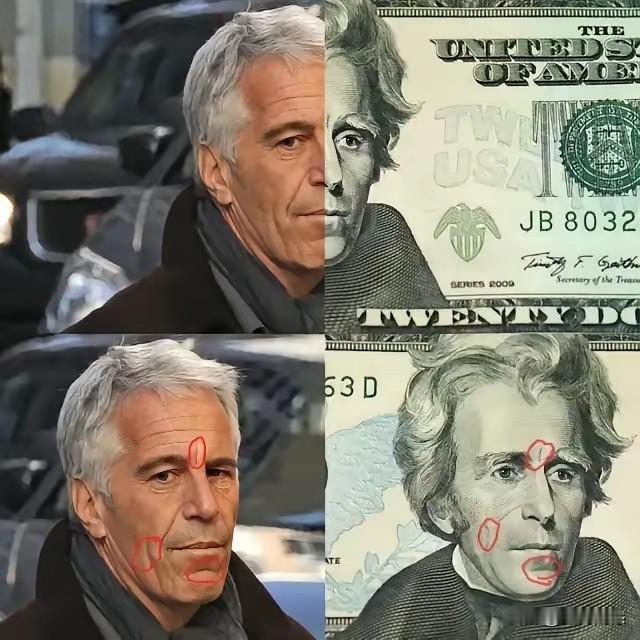 爱泼斯坦和美国第七任总统安德鲁杰克逊长得非常像,现在面值20美元钞票上印的就是安德鲁杰克逊的头像,细端详这两个人的相貌,确实有相似之处,只不过安德鲁杰克逊的头发长一些,脸稍微消瘦一些,但是从两个人的形态和神态上看,是非常相似的,真是一种巧合啊!