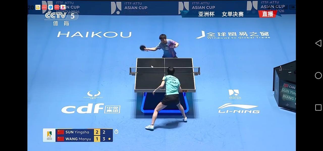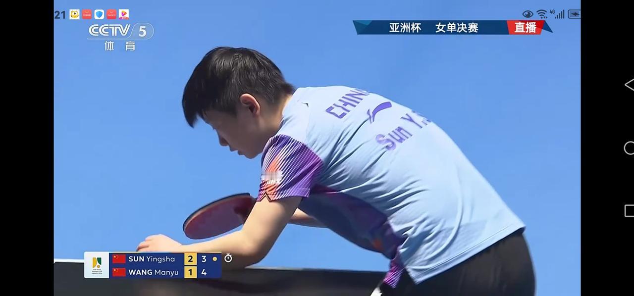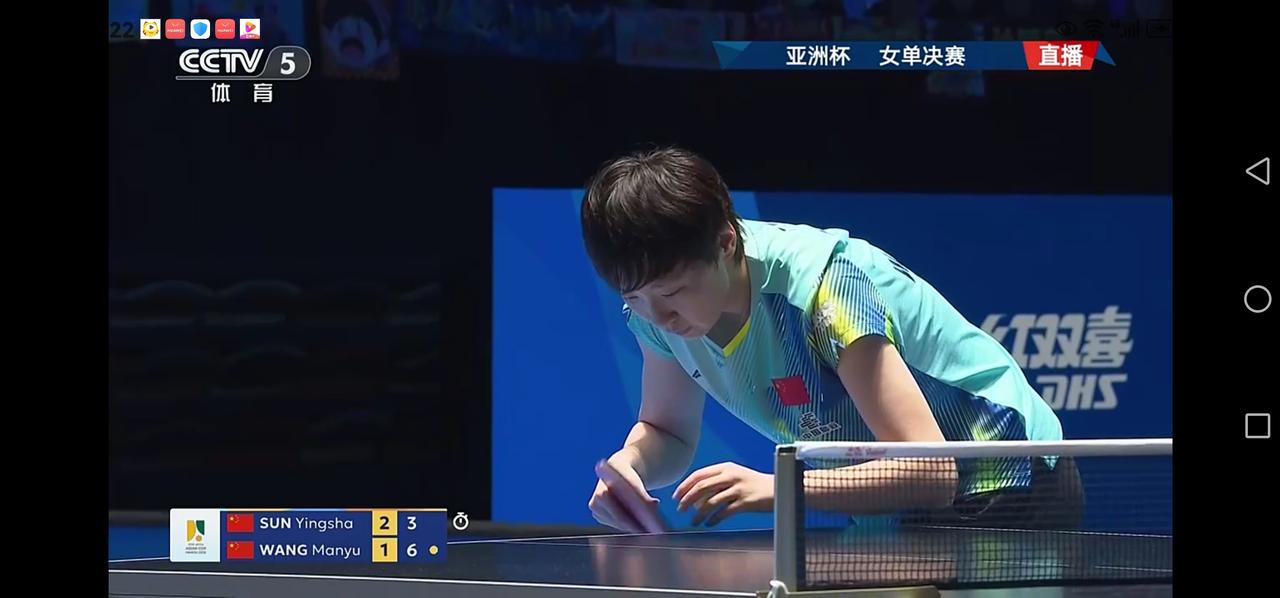 亚洲杯女单决赛:孙颖莎4-3绝杀王曼玉勇夺女单冠军奖杯 北京时间2月8日晚上,亚洲杯女单决赛如期进行,世界排名第一的孙颖莎迎战排名第二的王曼玉。之前两人交手28次,孙颖莎取得18胜10输的战绩,略占优势。今天的决赛两人势均力敌,局分由1-1来到2-2,3-3。决胜局,孙颖莎13:11惊险获胜,勇夺亚洲杯女单冠军奖杯,王曼玉获得亚军。 第一局,孙颖莎发球,取得1:0的领先。王曼玉把比分追成1平。孙颖莎连得5分6:1领先。王曼玉追回一分,孙颖莎连得4分10:2拿到第一局的局点,11:2拿下首局,取得开门红。 第二局,双方战成1平,孙颖莎连得两分3:1领先。王曼玉把比分追到3平。双方战成4平,王曼玉连得6分,10:4拿到局点,11:4拿下此局,双方战成1-1平。 第三局,双方打的难解难分,比分从1平、2平、3平、来到4平,孙颖莎连得3分7:4领先。王曼玉追回两分6:7。孙颖莎连得三分10:6拿到局点,王曼玉挽救3个局点把比分追到9:10,孙颖莎立即叫了暂停。暂停回来,孙颖莎11:9拿下此局,局分2-1领先。 第四局,开局阶段双方战成1平。王曼玉连得两分3:1领先,孙颖莎追到3平。王曼玉连得3分6:3领先。孙颖莎把比分追到6:9,王曼玉10:6拿到局点。11:6拿下此局,双方战成2-2平。 第五局,王曼玉开局阶段2:0领先。孙颖莎把比分追到2平、3平、4平。孙颖莎连续得分9:4扩大领先优势。王曼玉连得3分把比分追到7:9,孙颖莎10:7拿到局点,11:7拿下此局,局分3-2领先王曼玉。 第六局,开局双方战成1:1平,孙颖莎连得两分3:1领先,王曼玉叫了暂停。暂停回来王曼玉连得6分反超比分7:3领先。孙颖莎连得两分把比分追到5:7。王曼玉10:7拿到局点,孙颖莎挽救一个局点,王曼玉11:8拿下此局,双方战成3-3平,进入决胜局。 决胜局,孙颖莎发球,取得1:0的领先。王曼玉把比分追到1平,孙颖莎连得三分4-1领先。王曼玉追回一分2:4,双方交替得分,王曼玉把比分追到5:7、6:8、8:8,王曼玉反超比分9:8领先,孙颖莎把比分追到9:9,王曼玉发球抢攻10:9拿到赛点,孙颖莎挽救一个赛点双方战成10:10平。最终孙颖莎13:11拿下决胜局,4-3战胜王曼玉,夺得亚洲杯冠军奖杯。王曼玉获得亚军,蒯曼获得铜牌。孙颖莎 孙颖莎笑容