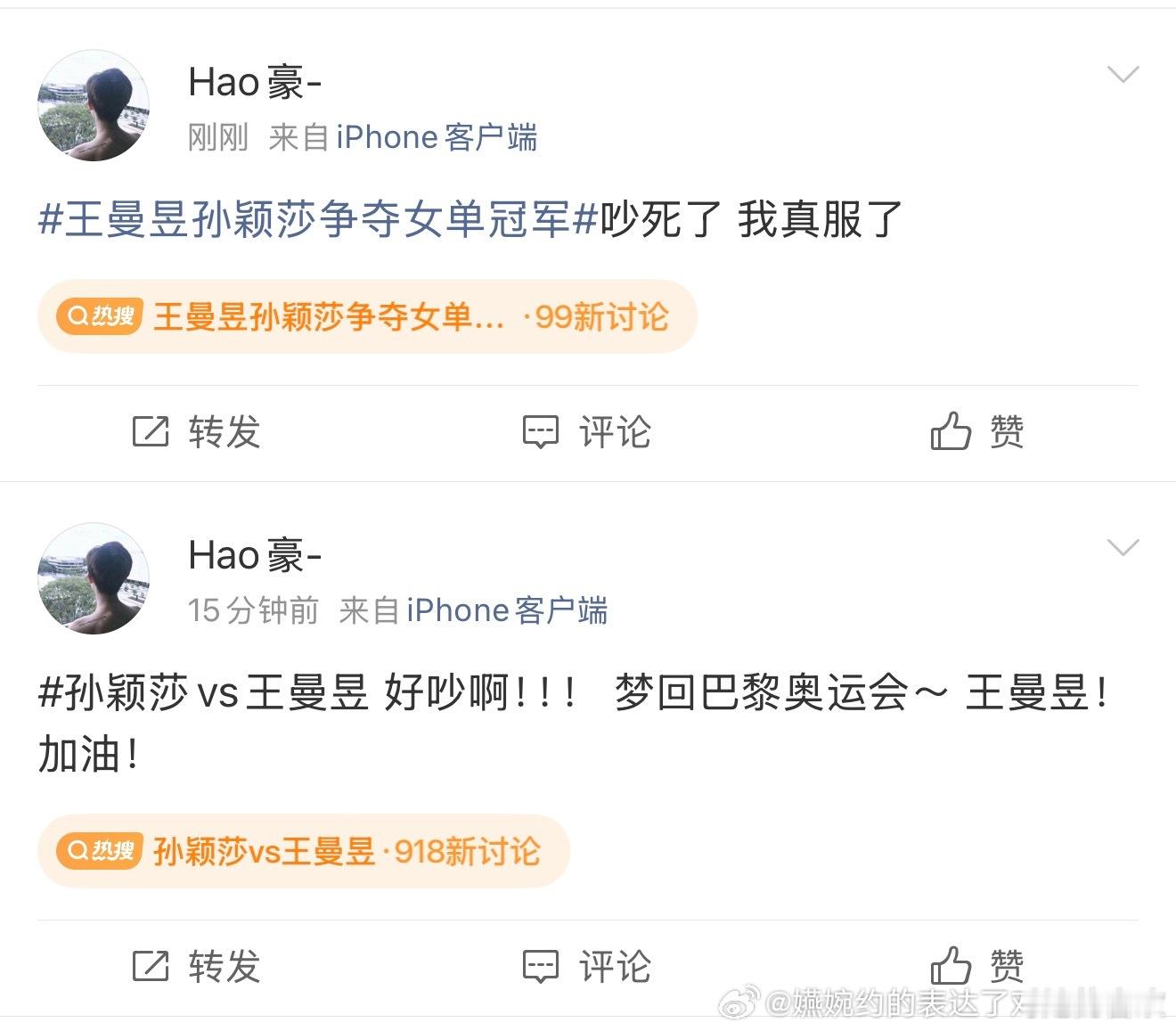 说得好像王曼昱上巴黎奥运单打了一样,孙颖莎赢了,闲吵自己去现场制止