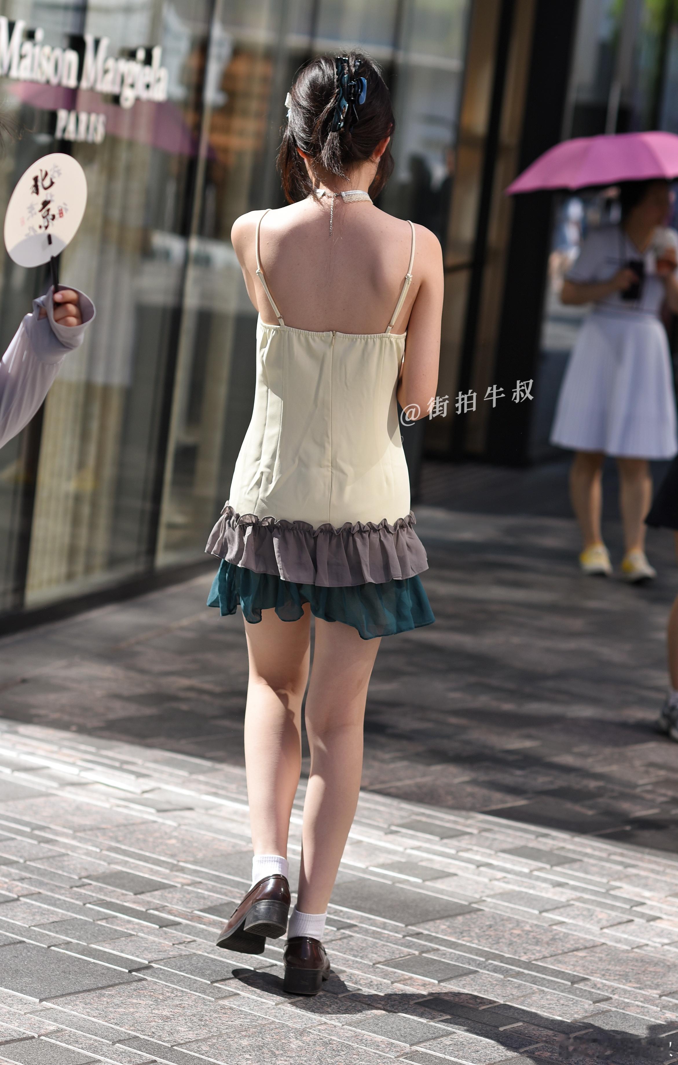 少女风的双层吊带短裙