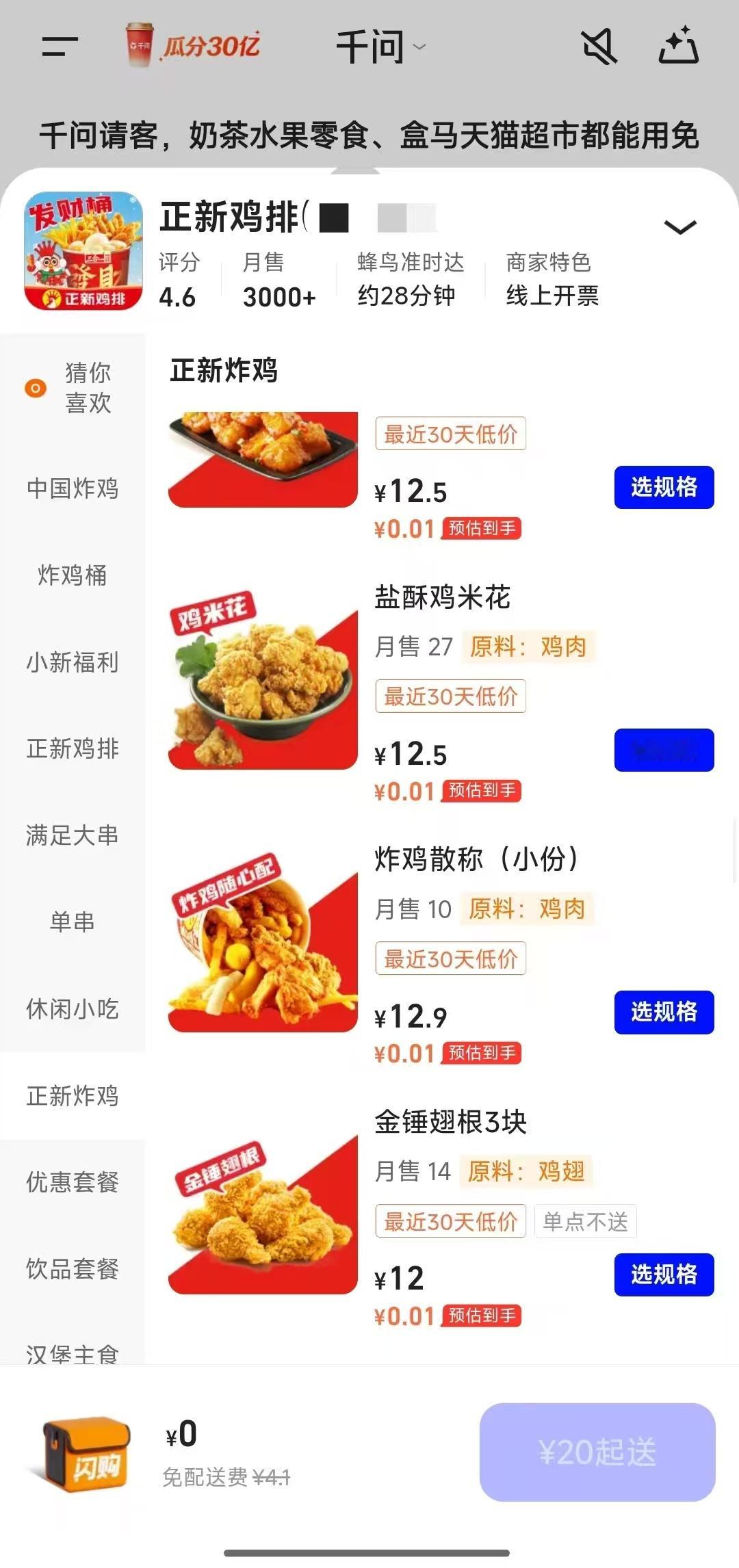 千问让我认识到25元的购买力 领到免单卡直接开启狂炫模式,炸鸡甜品全都安排上,2