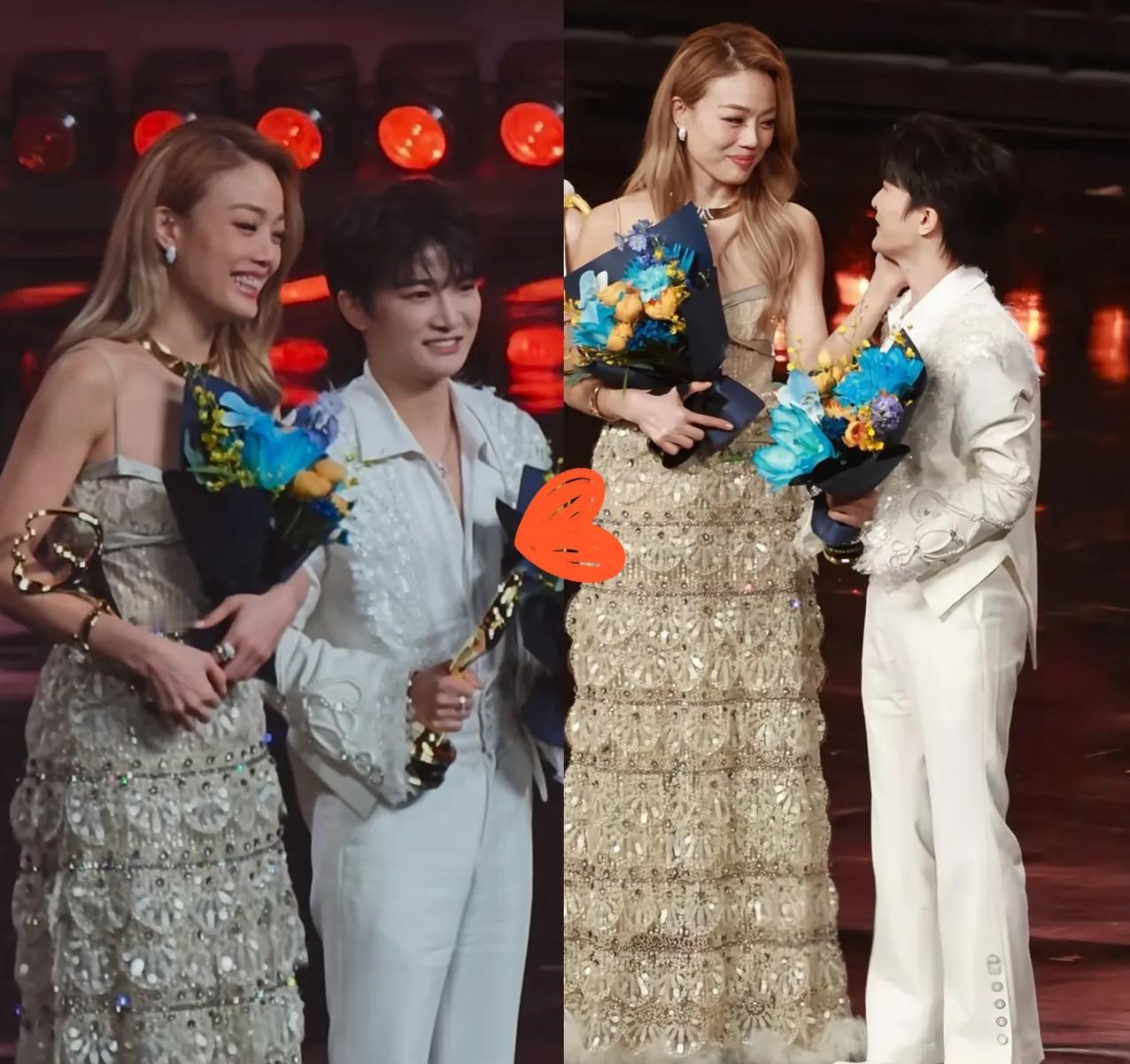 我有个直觉, 周深估计很难结婚了, 不是因为他身高不够,而是他跟女明星在一起的时候,根本没让人觉得有暧昧感 微博之夜他和容祖儿同台领奖,前辈拍肩又摸脸,笑得满眼宠溺,换别的男星早绯闻满天飞、CP粉炸场了,可到周深这儿,怎么看都是温柔姐姐逗可爱弟弟,连一丝恋爱氛围都找不到。 这么多年,不管和哪位女艺人同框,他永远是礼貌、干净、有分寸,自带“纯友谊滤镜”,不是没魅力,而是这份通透与真诚,把异性缘都变成了亲情友情,根本擦不出爱情火花。 内娱像他这样零绯闻、无CP感的歌手真的少见,这份纯粹反而更圈粉。你们觉得周深是天生没暧昧感,还是教养太好刻意保持距离?
