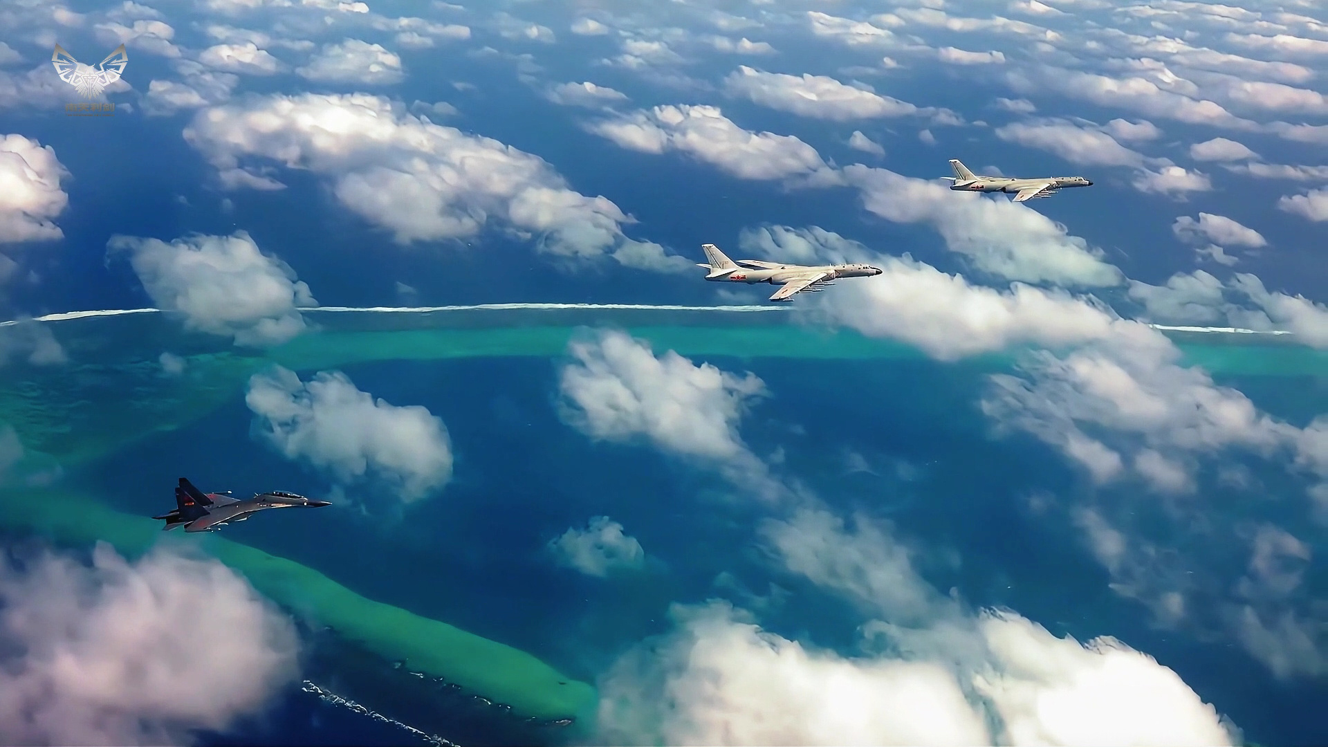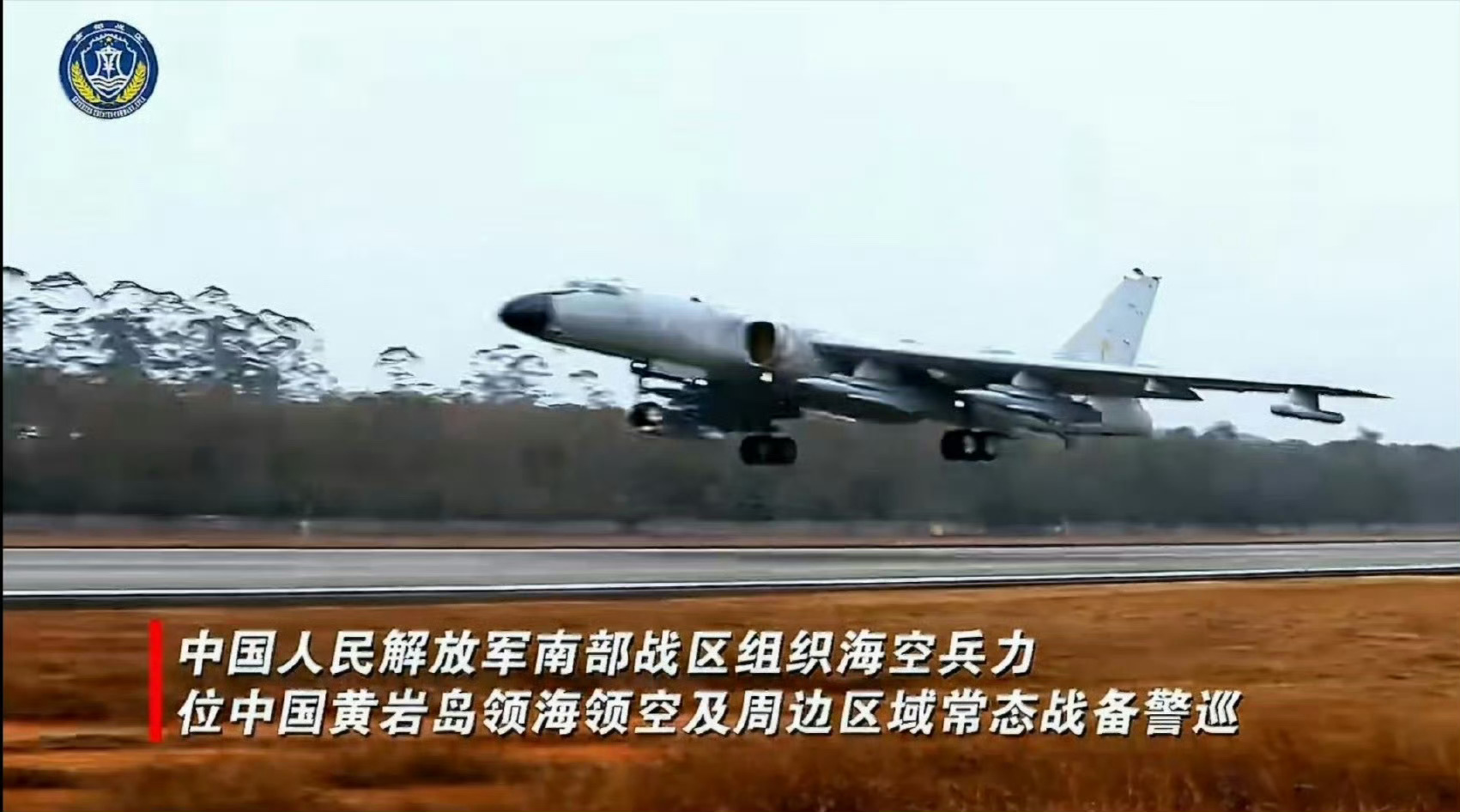 图1-5,1月底中国空军轰-6K和苏-30MKK、歼-16一起巡航黄岩岛, 其中轰-6K挂载4枚鹰击-12重型反舰导弹实弹。鹰击-12射程为400-500km,2.5马赫巡航,末端4.5马赫S弯突防。