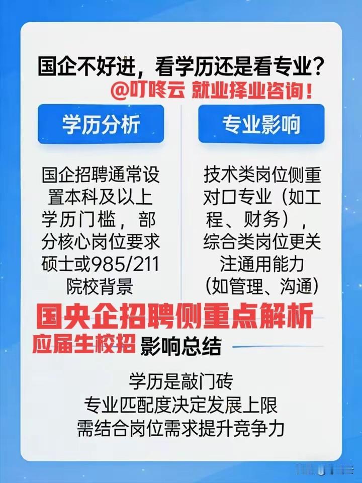 普通求职者怎么样才能进入国企?国央企招聘看学历还是看专业?哪个因素更重要,哪个