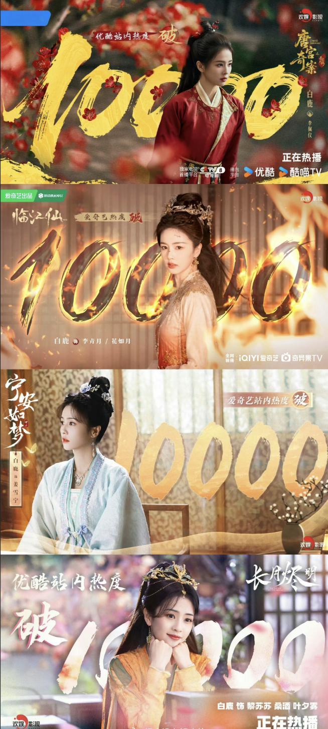 白鹿双平台四破万,接下去的最大考验就是在腾讯视频播出的莫离了,如果能实现破3万,将是另一位三平台一番破万演员。