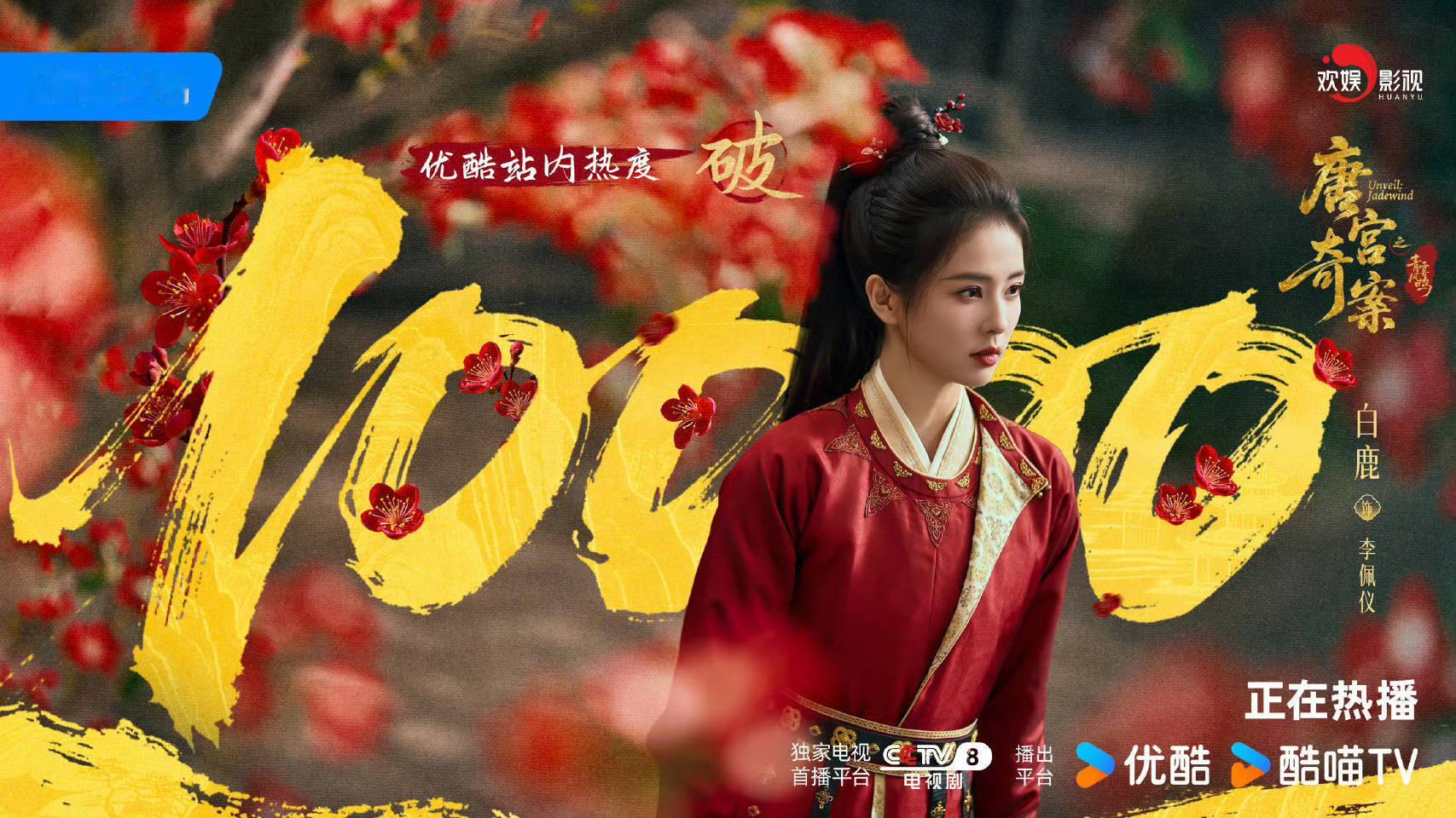 白鹿、王星越唐宫奇案开播第4天数据唐宫奇案优酷破万,最高10016,较前日+5