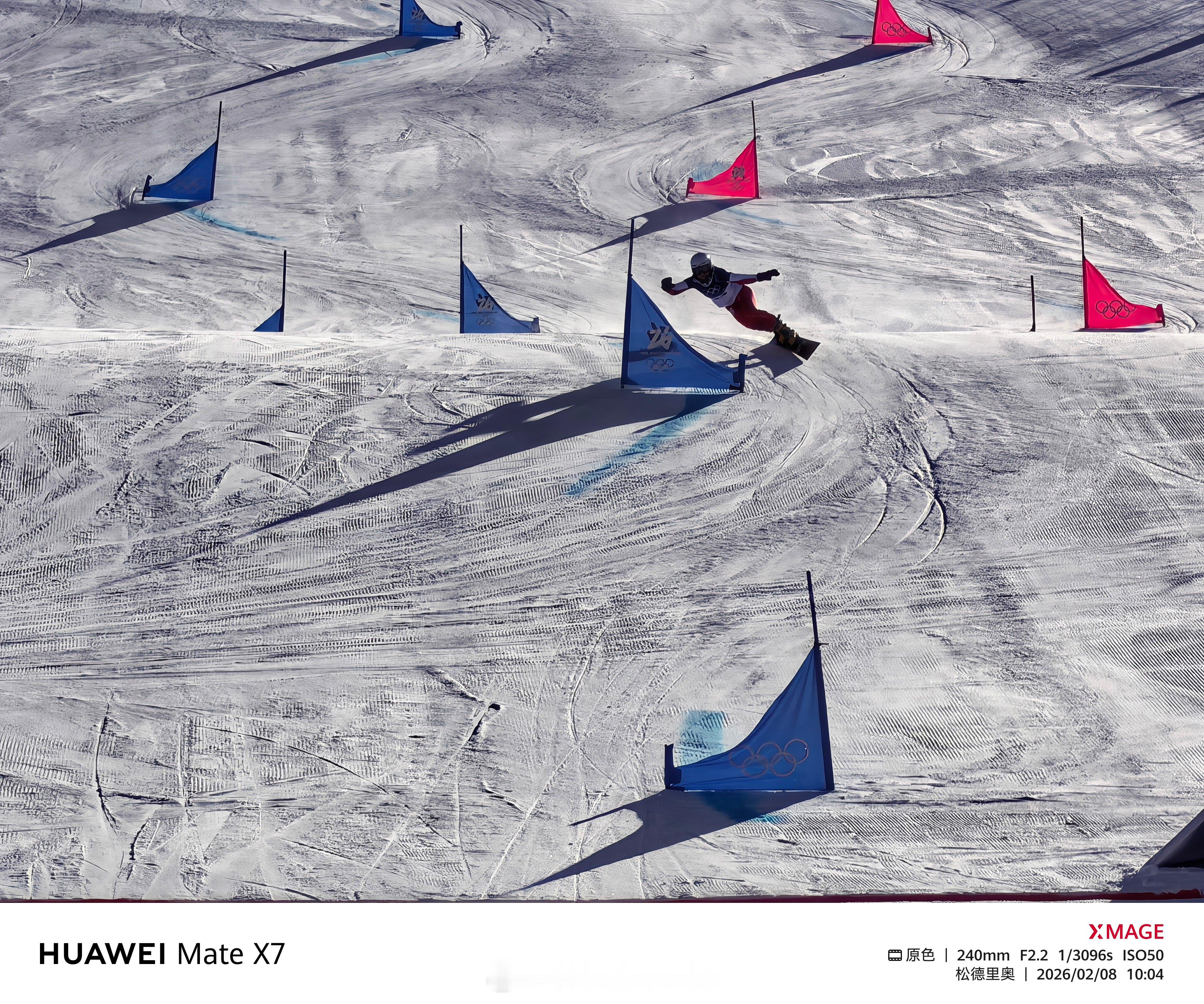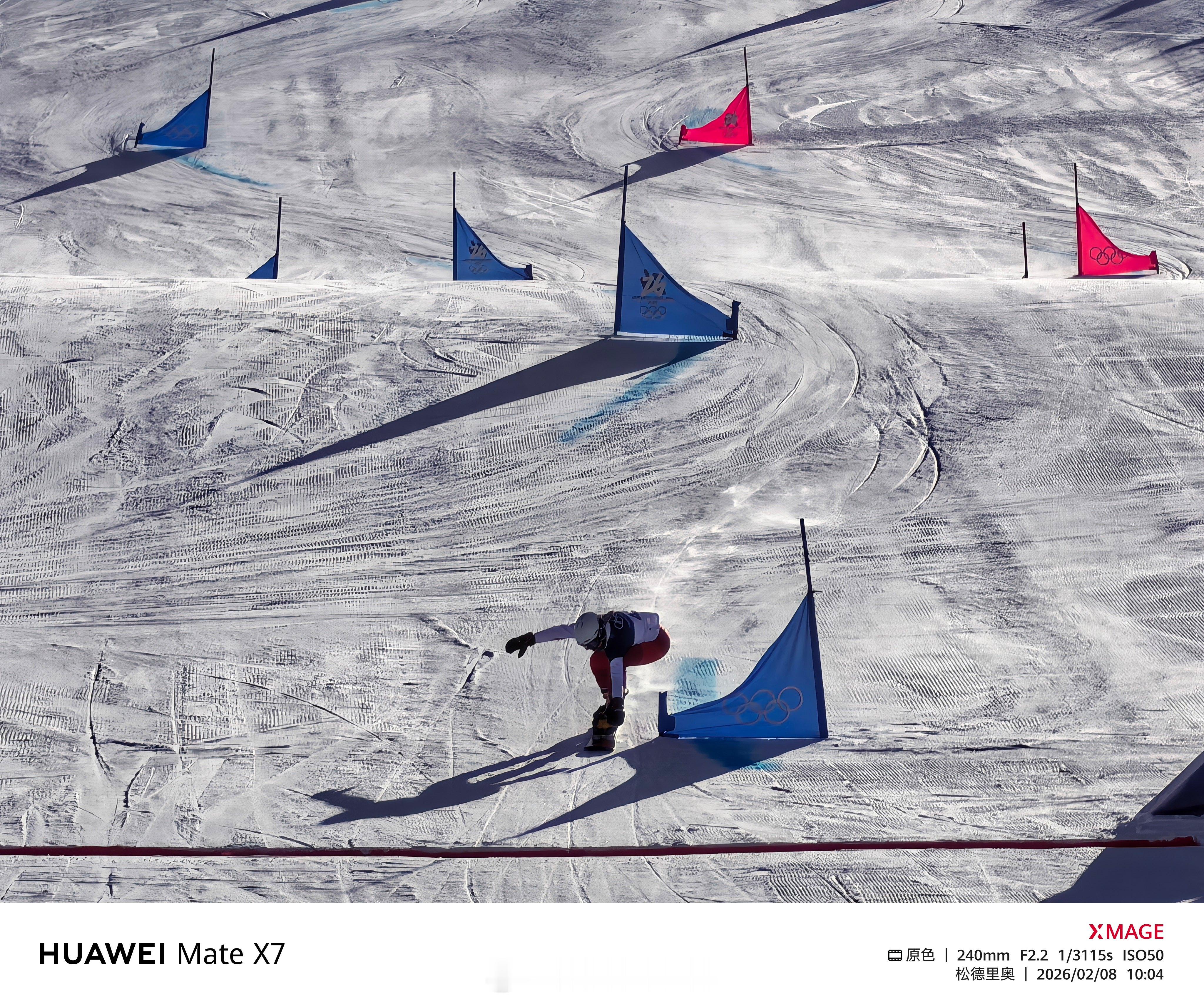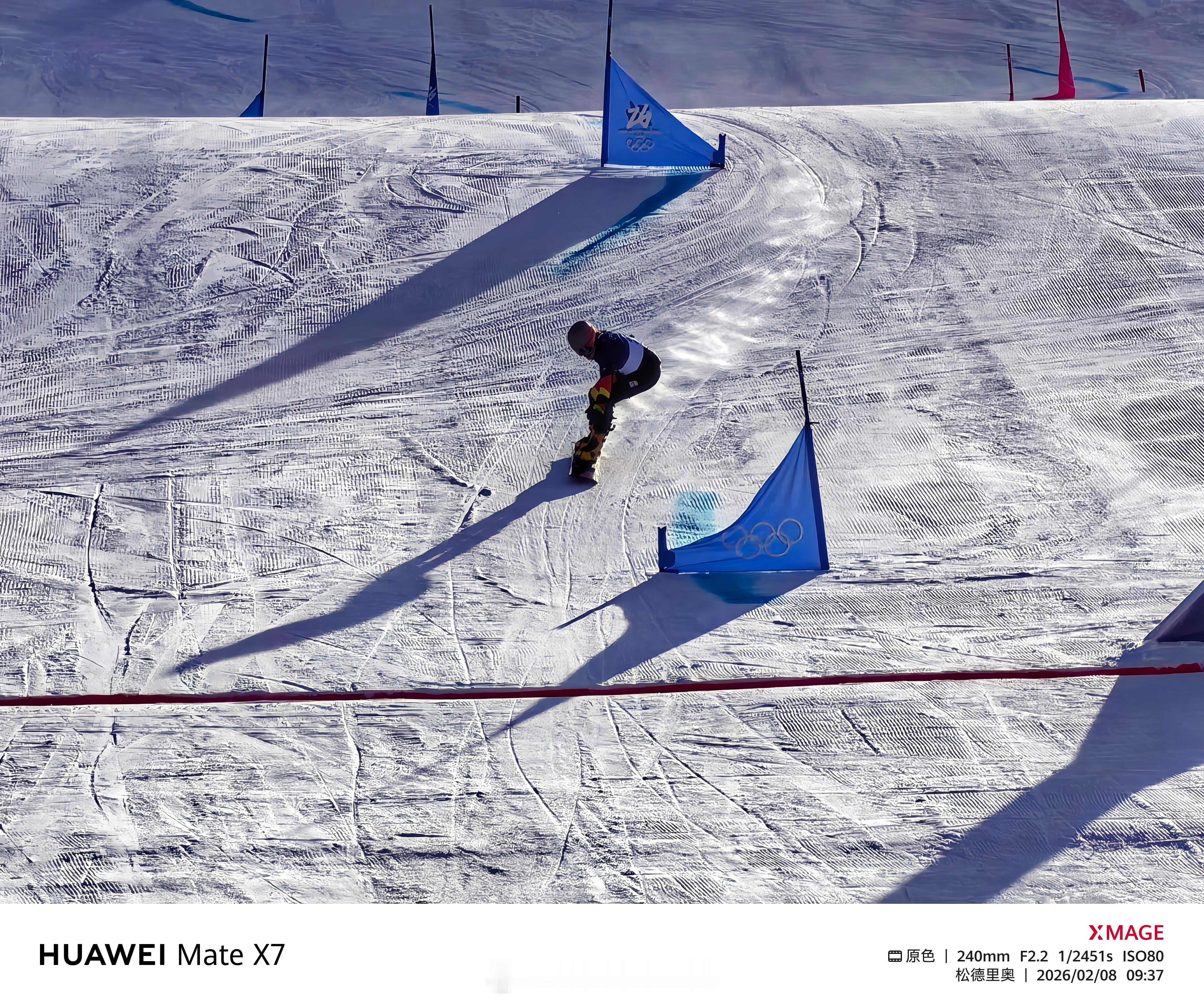 米兰冬奥会今天带来的是单板滑雪平行大回转资格赛的现场图,今儿带了华为Mate X7,这么远的距离高速抓拍下,10倍长焦也是稳稳的出片!冬奥加油