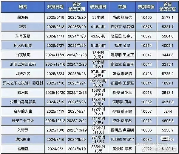 唐宫奇案灯塔第一了,目前来看破万速度是第五!主要是优酷的日活还是蛮低的,这能直接第一,白鹿王星越底盘可以的白鹿破万四连拍