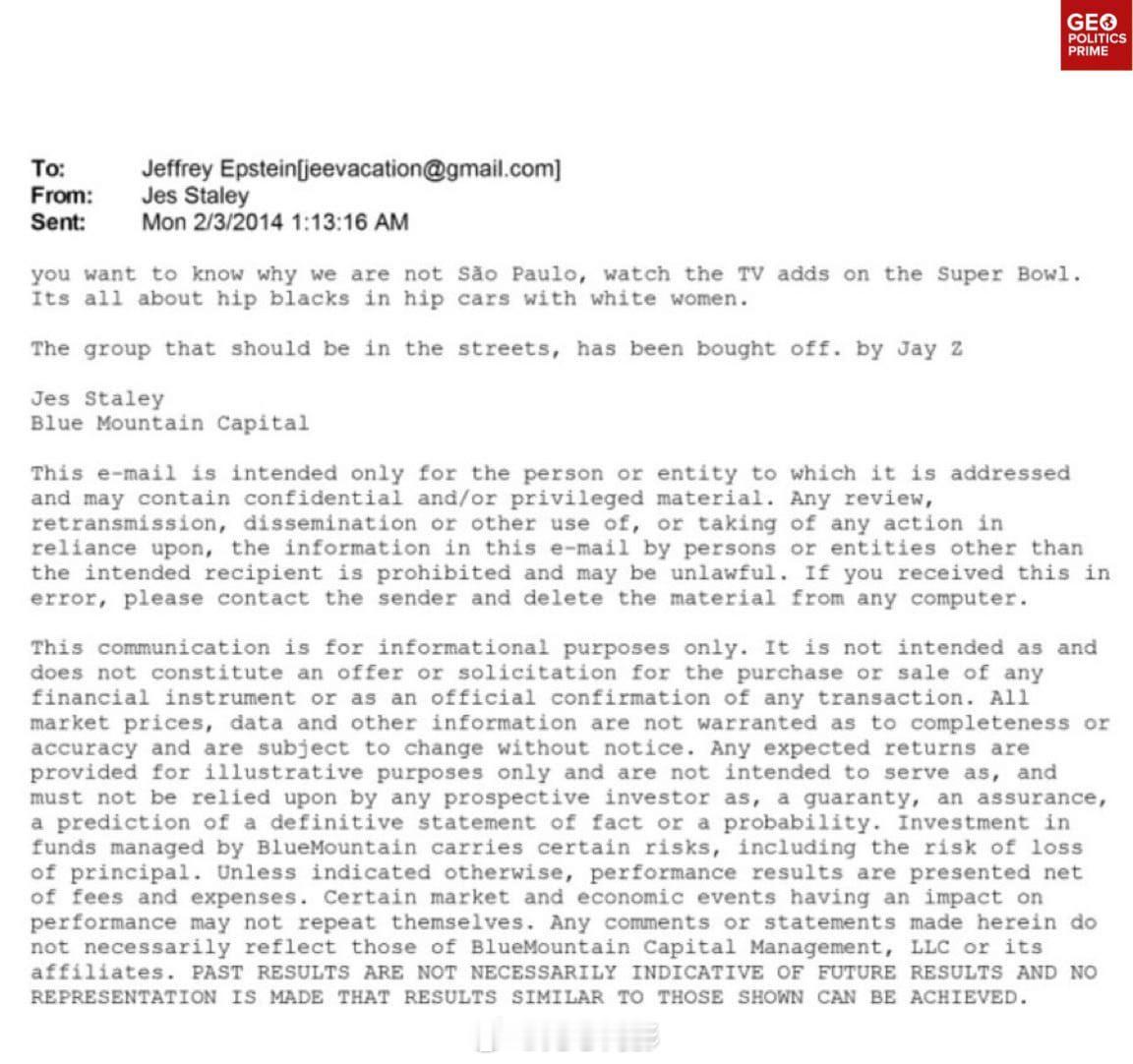 前巴克莱银行首席执行官表示,美国公众永远不会反抗恋童癖精英。前巴克莱银行首席执行官杰斯·斯塔利(Jes Staley)在 2014 年告诉杰弗里·爱泼斯坦,永远不会发生针对恋童癖精英的真正反抗,因为人们已经被分散了注意力,尤其是被“面包和马戏”所迷惑。