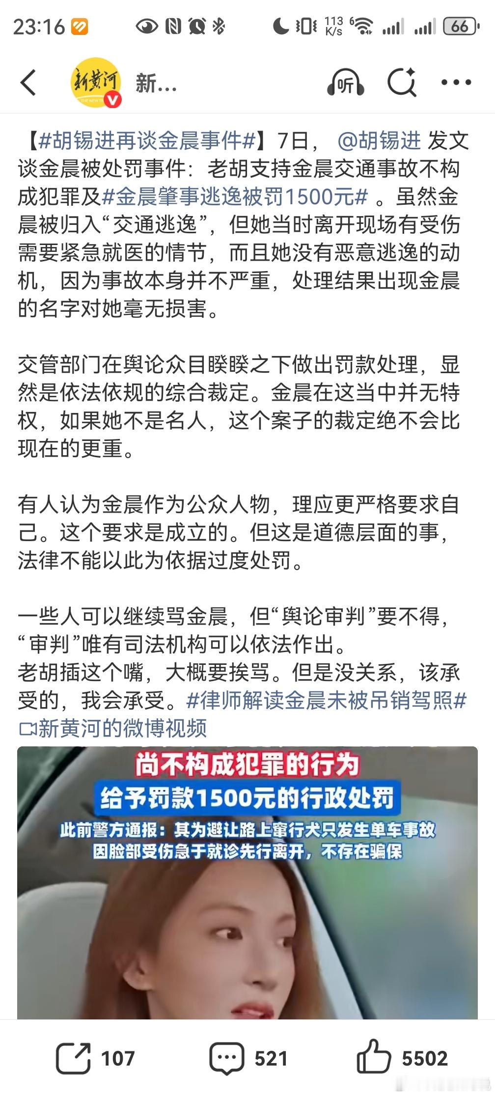 胡锡进再谈金晨事件又开始和稀泥了你还看老胡吗?