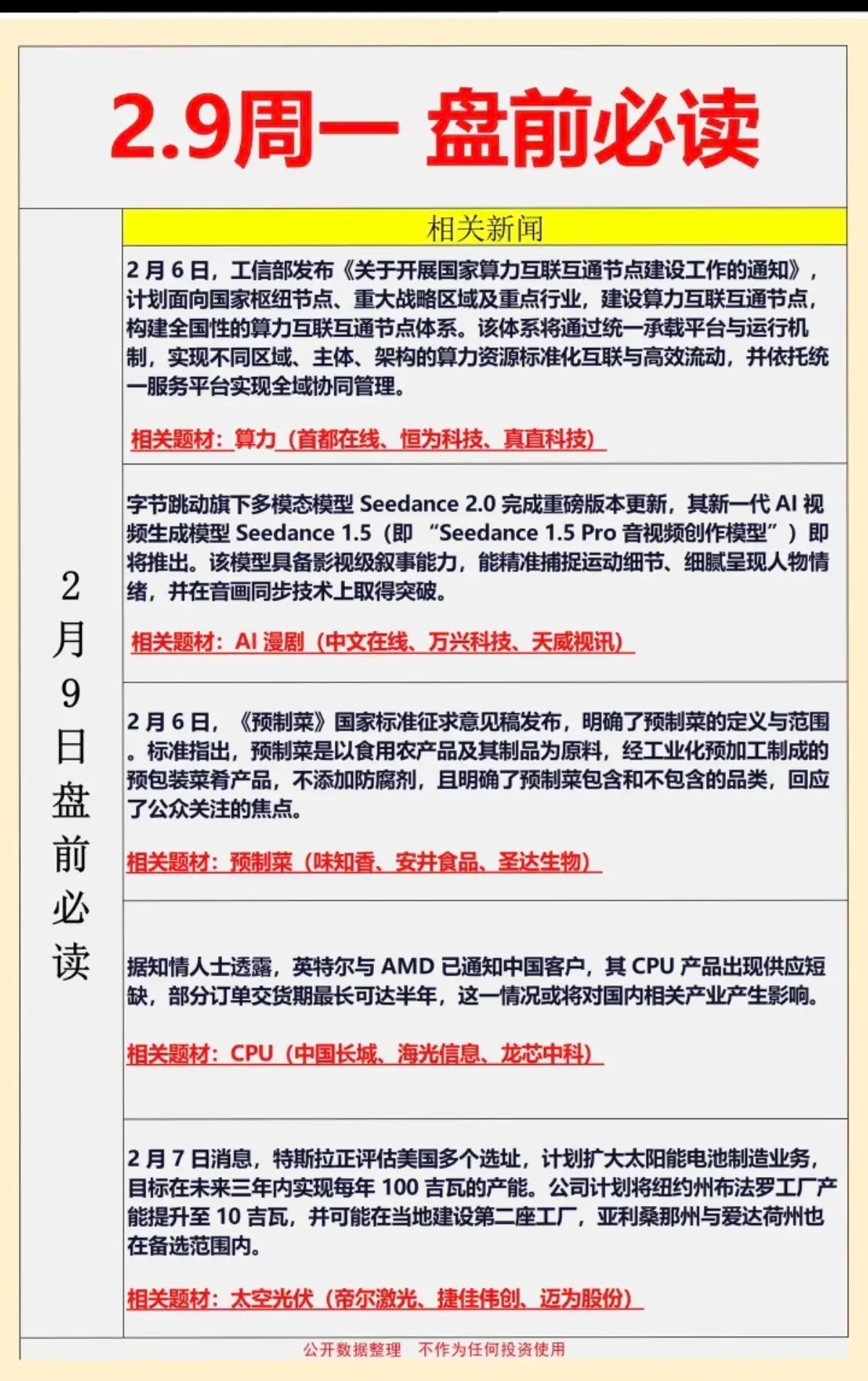 1.算力2.多模态AI漫剧3.预制菜4.CPU5.太空光伏