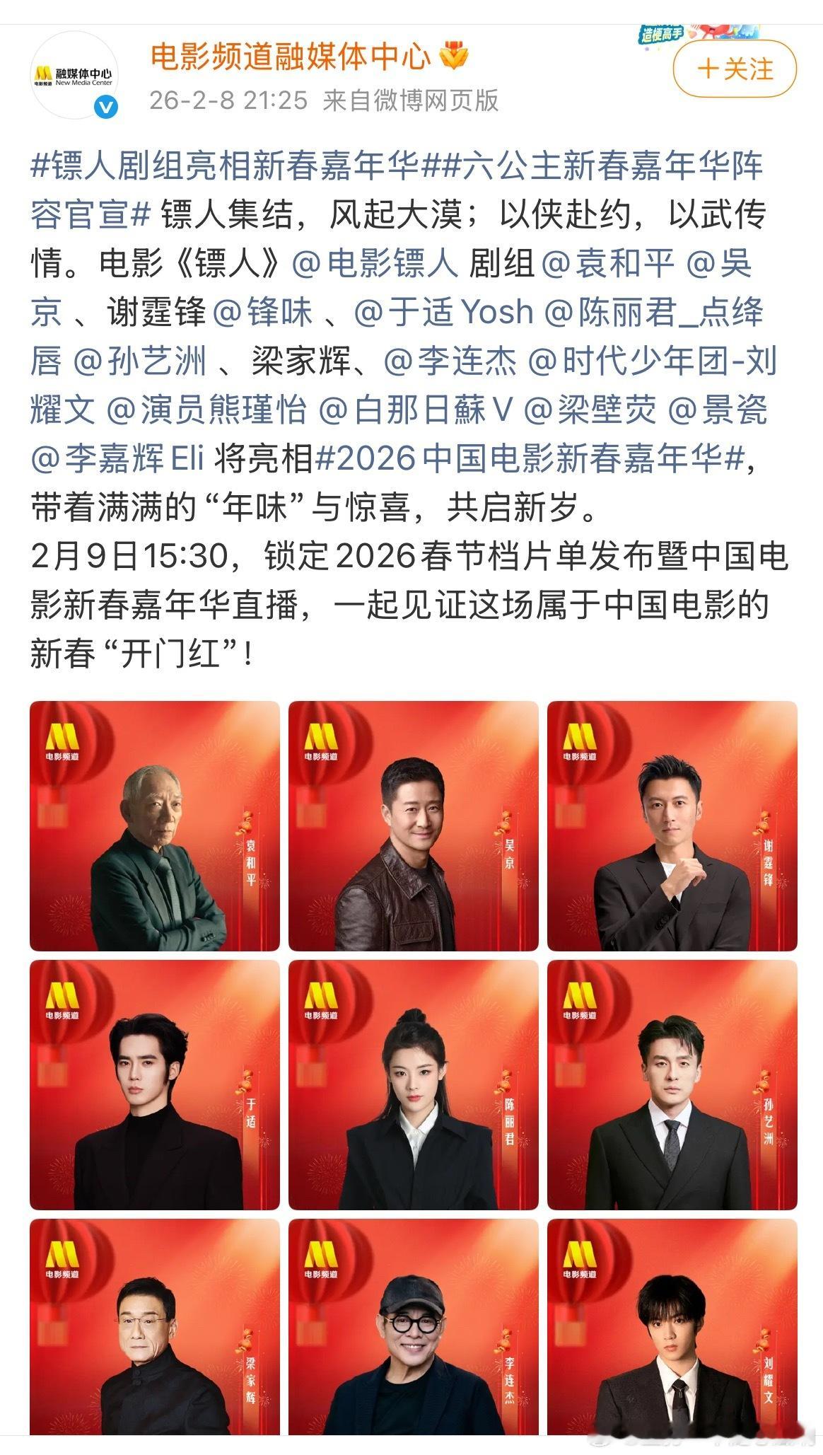 春节档电影明天开启预售,易烊千玺,朱一龙,刘耀文《惊蛰无声》,王鹤棣,宋茜《星河入梦》,吴京,谢霆锋,于适,陈丽君,刘耀文《镖人》还有新春嘉年华直播