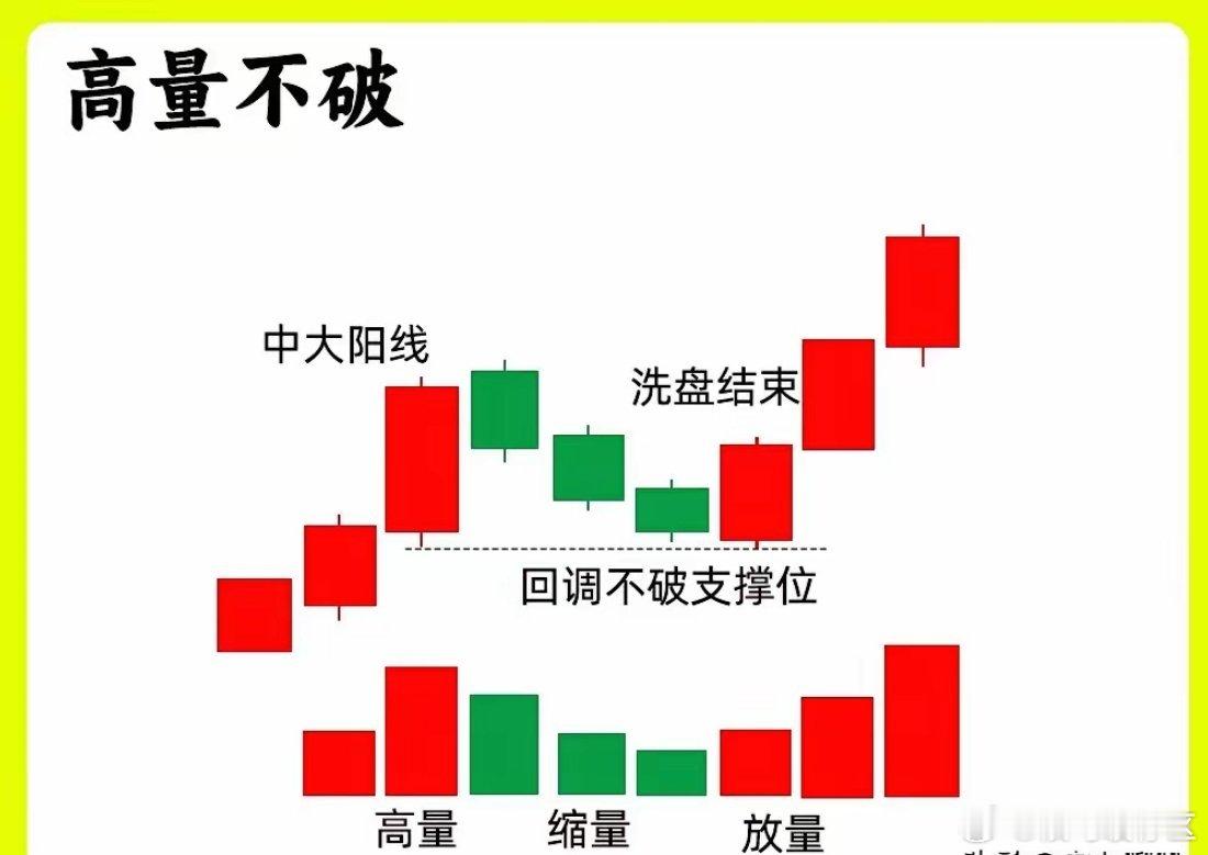- 上涨途中出现:多为主力洗盘动作二、高量柱标准必须出现一根中大阳线,成交量是高量柱:量能要超过前后10个交易日的最高量,常见是3倍左右放量,这才是真主力异动。三、价格不破(核心第一关)随后股价回调,但全程不能跌破这根中大阳线的最低价:- 不跌破最高价:最强势