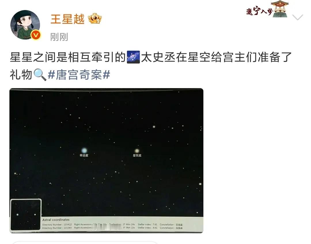 唐宫破万,王星越萧怀瑾送了粉丝和剧粉两颗星星好浪漫好有心的男孩🥹