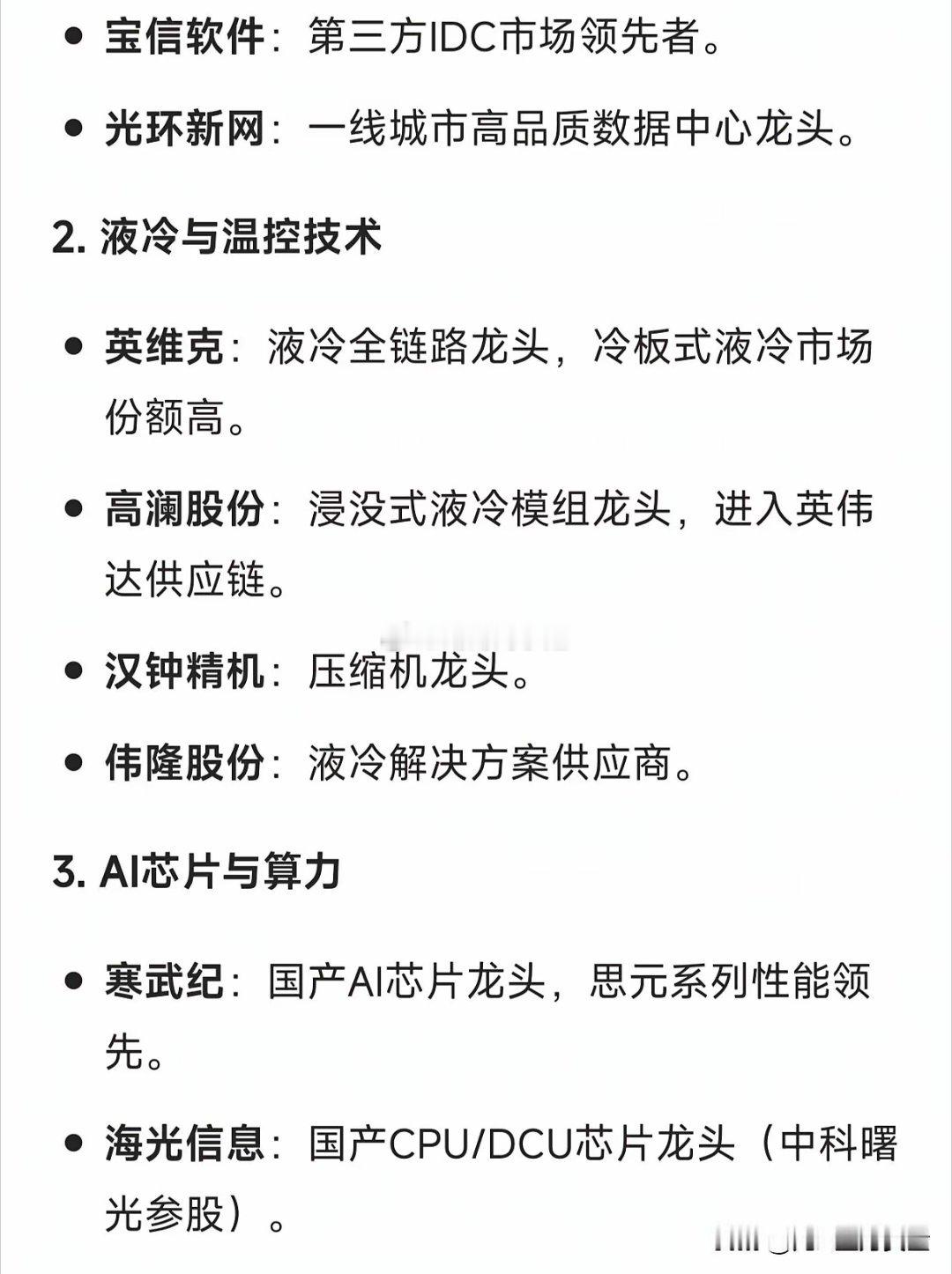 数据中心AIDC产业链核心龙头AIDC即人工智能数据中心,堪称AI时代的“电力网
