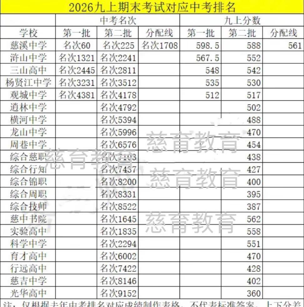 慈溪首考 慈溪 中考 录取 学校
