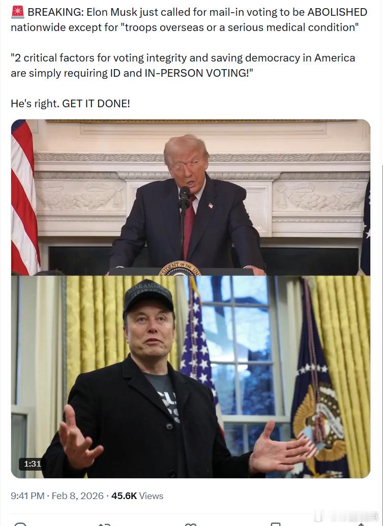 埃隆·马斯克刚刚呼吁,全美范围内取消邮寄投票,除非是“海外服役的军人或严重疾病的情况”。